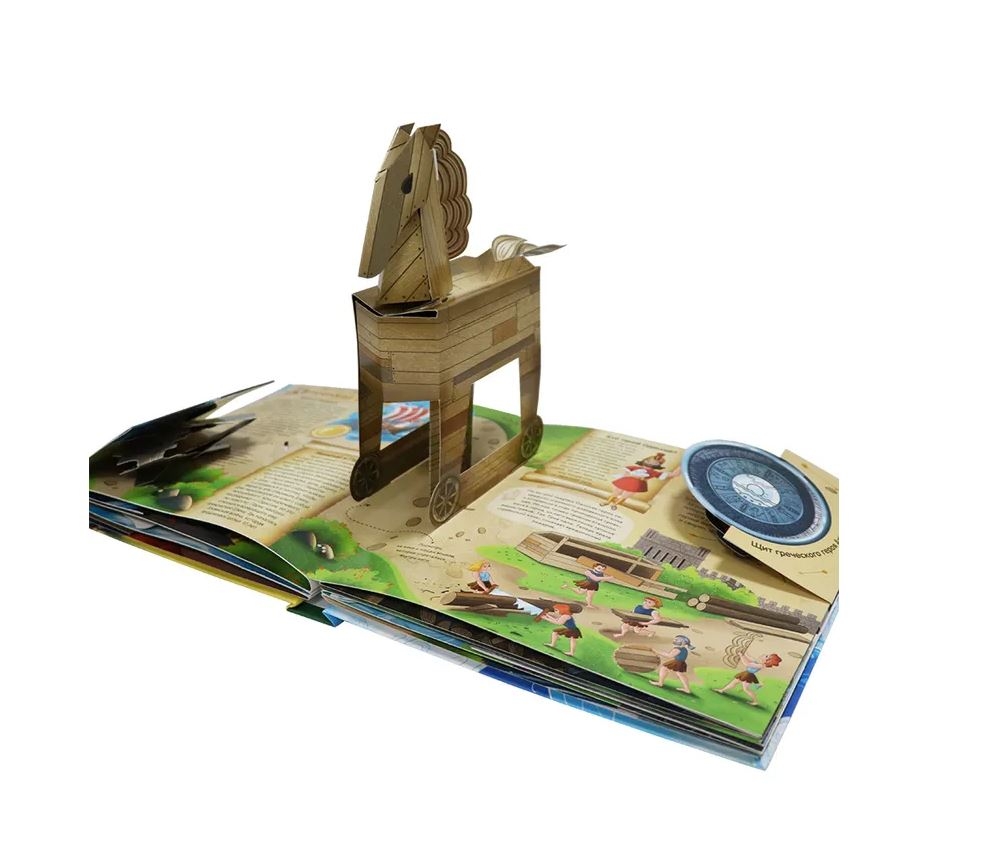 The interactive encyclopedia "Myths of Ancient Greece" is a real portal to the fascinating world of ancient mythology. Under the cover you will find large-scale 3D elements: Mount Olympus and the Trojan horse, the multi-headed hydra and Theseus' ship. Colorful illustrations tell about the great gods and goddesses, unfolding before your eyes the exploits of heroes and famous events. This book is not only fascinating and informative, but also colorful and interactive. Give your child a unique atmosphere of famous adventures.