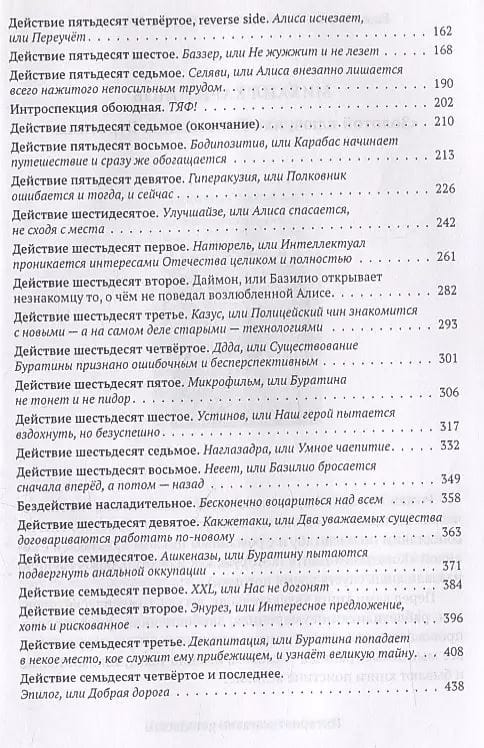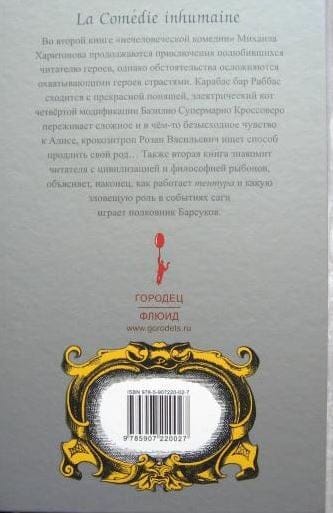 In the second book of "inhuman comedy" by Mikhail Kharitonov continues the adventures of the reader's favorite characters, but the circumstances are complicated by the passions encompassing the heroes. Karabas bar Rabbas comes together with a beautiful ponyasha, the electric cat of the fourth modification of Basilio Super Mario Crossovero experiences a complex and somewhat hopeless feeling for Alice, crocositrope Rozan Vasilievich is looking for a way to prolong his family ... . Also the second book introduces the reader to the civilization and philosophy of fish, explains, finally, how the tentura works and what a sinister role in the events of the saga plays Colonel Barsukov.