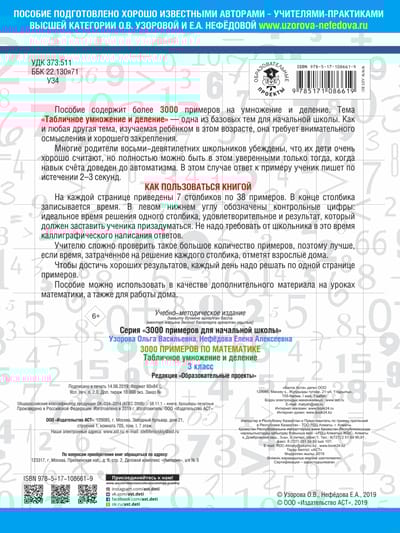 This manual contains more than 3000 multiplication and division examples. The topic "Tabular Multiplication and Division" is one of the basic topics for the third grade of the 1-4 system and the first half of the second grade of the 1-3 system. Like any other topic a child learns at this age, it requires careful reflection and good reinforcement.