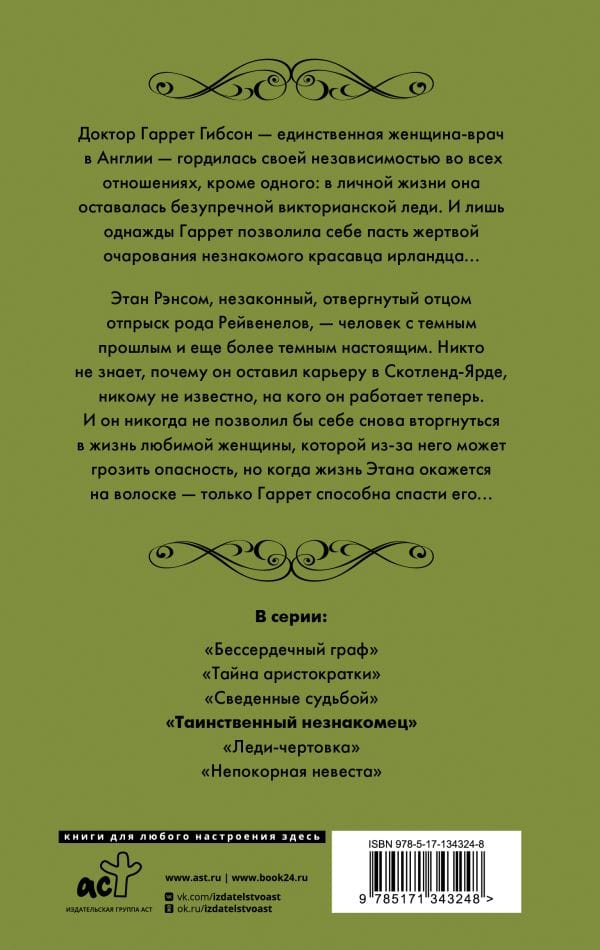 Dr. Garrett Gibson, the only female doctor in England, prided herself on her independence in every way but one: in her private life she remained an impeccable Victorian lady. Only once did Garrett allow herself to fall victim to the charms of a strangely handsome Irishman ...