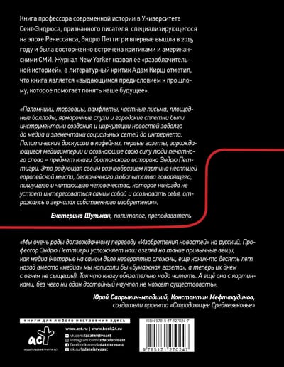 A book by Andrew Pettigree, a professor of modern history at the University of St. Andrews and an acclaimed writer specializing in the Renaissance, first came out in 2015 and was rapturously received by critics and the American media. The New Yorker magazine called it "an expository history," and literary critic Adam Kirsch noted that the book is "an outstanding preface to the past that helps us understand our future."