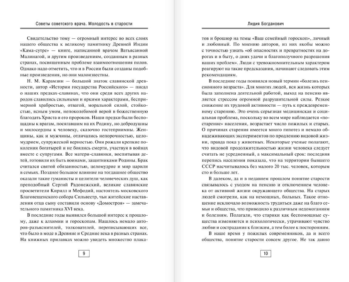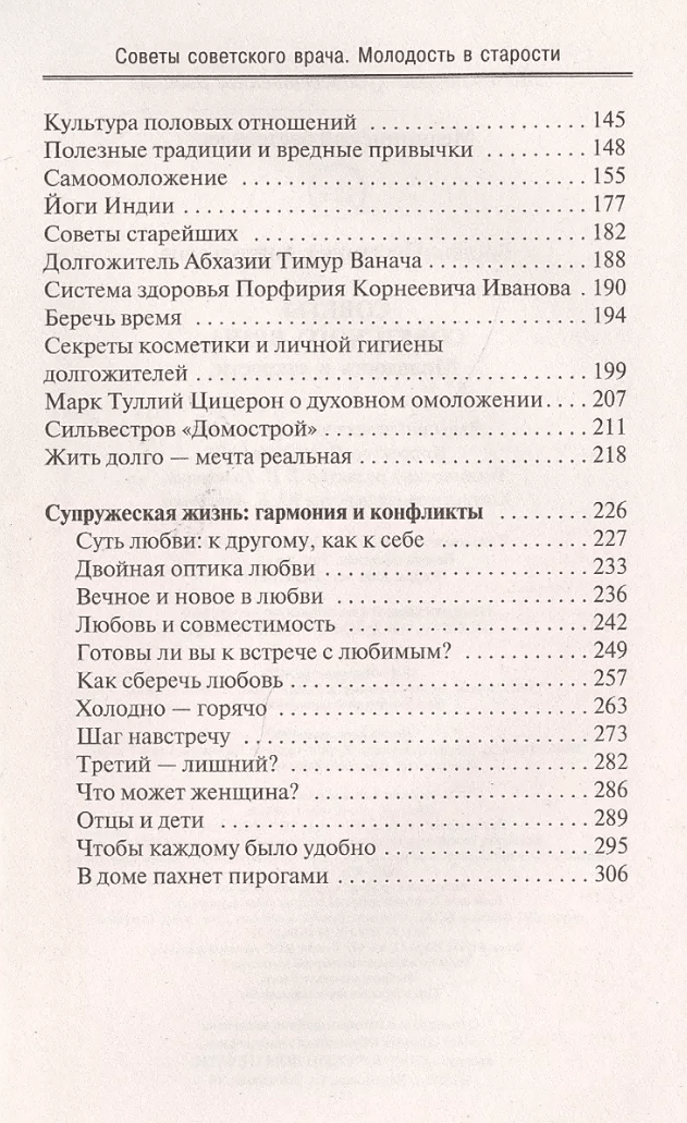 The book of Doctor of Medical Sciences LA Bogdanovich "Tips of a Soviet doctor. Youth in old age" is a classic of Soviet medical literature, which is devoted to this problem. It collects extensive material accumulated by the author over many years of medical practice: advice on personal hygiene and recipes for the preparation of rejuvenating cosmetics, recommendations on nutrition and the use of herbs, methods of prevention of impotence and female sexopathology. The reader can also learn the secrets of longevity of the peoples of the East: the book presents the Chinese system of Taiji exercises and techniques of Indian yogis.