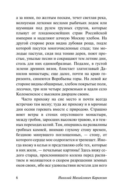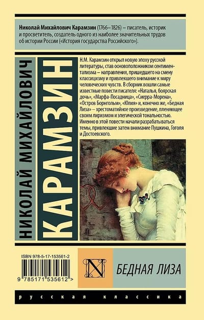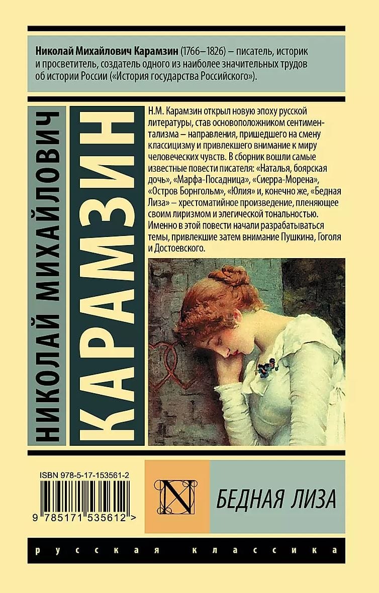 N.M. Karamzin opened a new era of Russian literature, becoming the founder of sentimentalism - a trend that replaced classicism and drew attention to the world of human feelings. The collection includes the most famous stories of the writer: "Natalia, Boyar's Daughter", "Marfa Posadnitsa", "Sierra Morena", "Borngolm Island", "Julia" and, of course, "Poor Liza" - a textbook work that captivates with its lyricism and elegiac tone. It was in this story that the themes that later attracted the attention of Pushkin, Gogol and Dostoevsky began to be developed.
