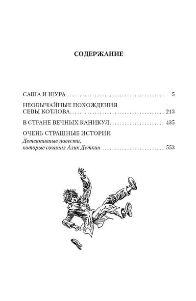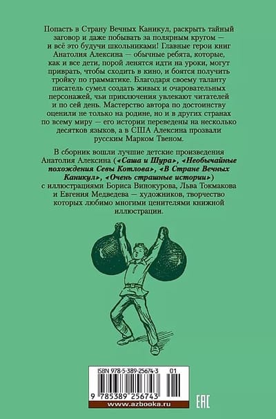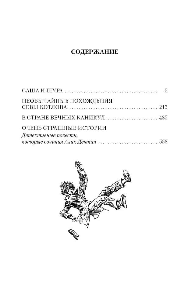 More than anything else in the world, Sasha dreams of going on a trip somewhere far away, without mom, without dad, without adults at all. And one day his wish comes true: his mother sends her son to the village to visit his grandfather. There the boy meets his namesake, who calls him Shura - otherwise they will confuse him. The new acquaintance turns out to be a fictitious and fidgety boy, and therefore Shura's summer is full of fun adventures! And Petya - the main character of the story "In the Land of Eternal Vacations" - also has a dream. But Petya is very lazy, and he dreams not about traveling, but about the fact that the vacation never ends. And he wanted it so badly that he really found himself in the Land of Eternal Vacations. Now instead of boring lessons he has a schedule full of entertainment: going to the movies, visiting the circus, eating gingerbread and candy ... But the boy quickly realizes: without loyal friends nearby even eternal vacations are not in joy. This collection also includes other equally fascinating stories by Anatoly Aleksin, which are considered his best children's works.