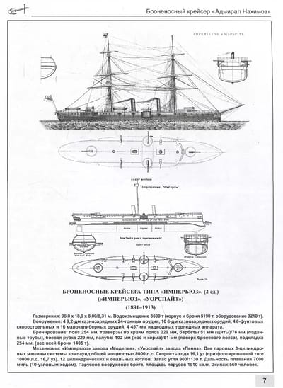 The battleship "Admiral Nakhimov", named in honor of the famous naval commander who defeated the Turkish fleet in the Battle of Sinop, became one of the most interesting warships built in the Russian Empire. "Admiral Nakhimov" significantly surpassed in artillery power most of the ships of the late XIX century. For a long time he was one of the fastest and heaviest cruisers in the world. It was on this ship that for the first time in the Russian Navy guns were installed in armored turrets, as well as the use of electric lighting and anti-torpedo networks. The cruiser was built during the transitional period of armored fleet development, when steam engines and sailing spar were combined in the projects - so "Nakhimov" turned out to be the largest sailing brig in the history of the Russian Navy. The ship spent most of its service in ocean voyages - from the Pacific Ocean to the United States and the Mediterranean Sea. The campaign as part of the 2nd Pacific Squadron was his last voyage, and now the famous cruiser, heroically lost in the Battle of Tsushima, rests in the waters of the Korean Strait.