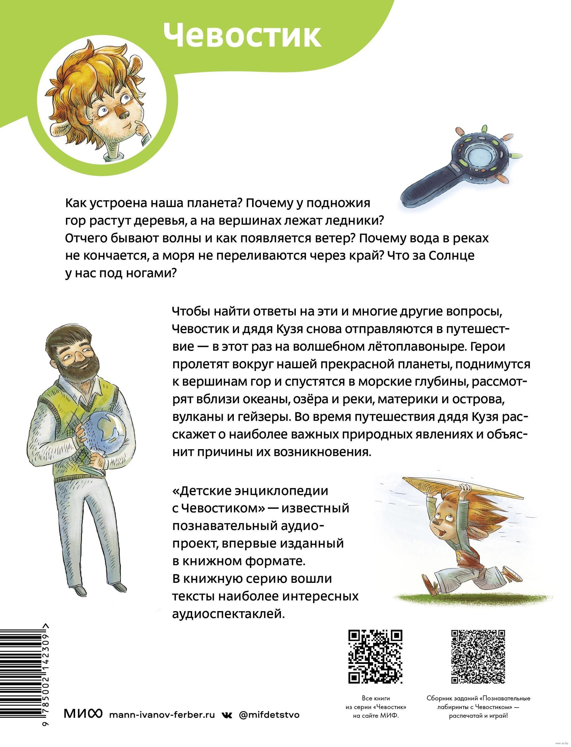The book "Planet Earth" sends children's favorite characters - Chevostok and Uncle Kuzya - on a round-the-world trip around the Earth. During the journey, Uncle Kuzya will tell about many natural phenomena and the reasons for their appearance.