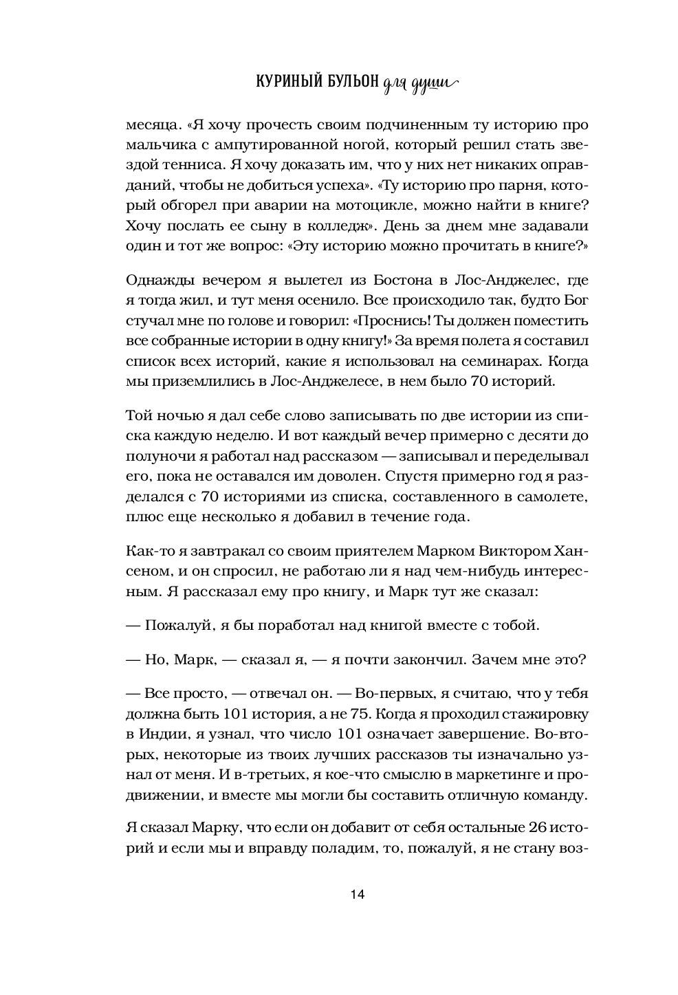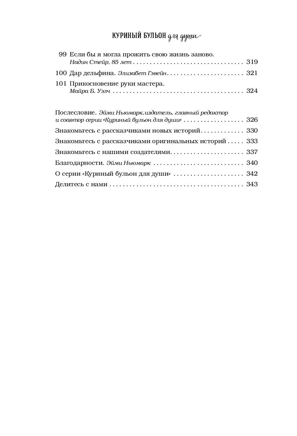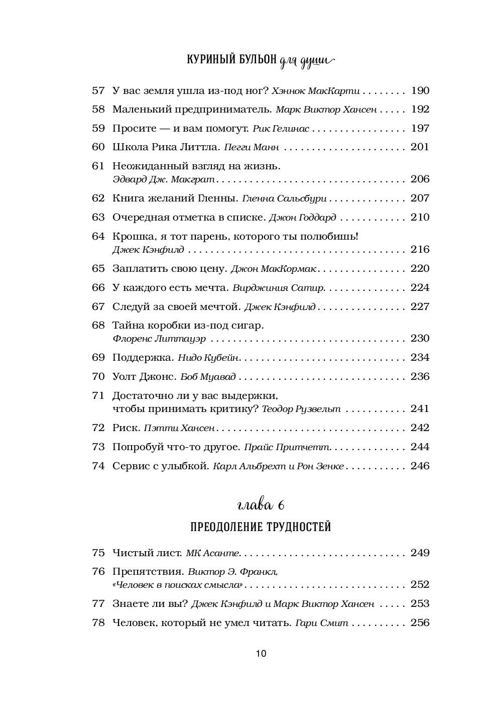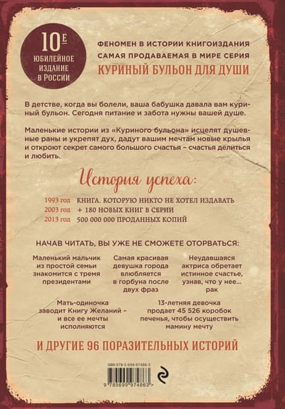 As a child, when you were sick, your grandmother would give you chicken broth. Today, nourishment and care are needed for your soul. Little stories from "Chicken Broth" - will heal your soul wounds and strengthen your spirit, give your dreams new wings and reveal the secret of the greatest happiness - the happiness to share and love.