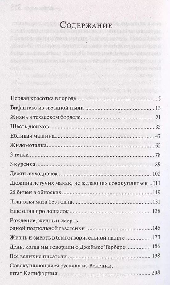 Charles Bukowski is a cult American writer of the twentieth century, whose European popularity has always overtaken the American one (in Germany alone, the lifetime circulation of his books exceeded two million), the author of more than forty books, including novels, poems, essays and short stories. Despite the sometimes shocking naturalism, his texts are full of lyricism, even a kind of sentimentality. Bukowski is rightly considered a master of the short form, and his collection "The First Beauty in Town", which is a kind of two-volume set with the classic "Stories of Ordinary Madness" - a vivid confirmation of this: bringing his trademark mastery of words to incredible perfection, Bukowski leads his lyrical hero - a womanizer and drunkard, the author's apparent alter ego - through all the circles of modern hell.