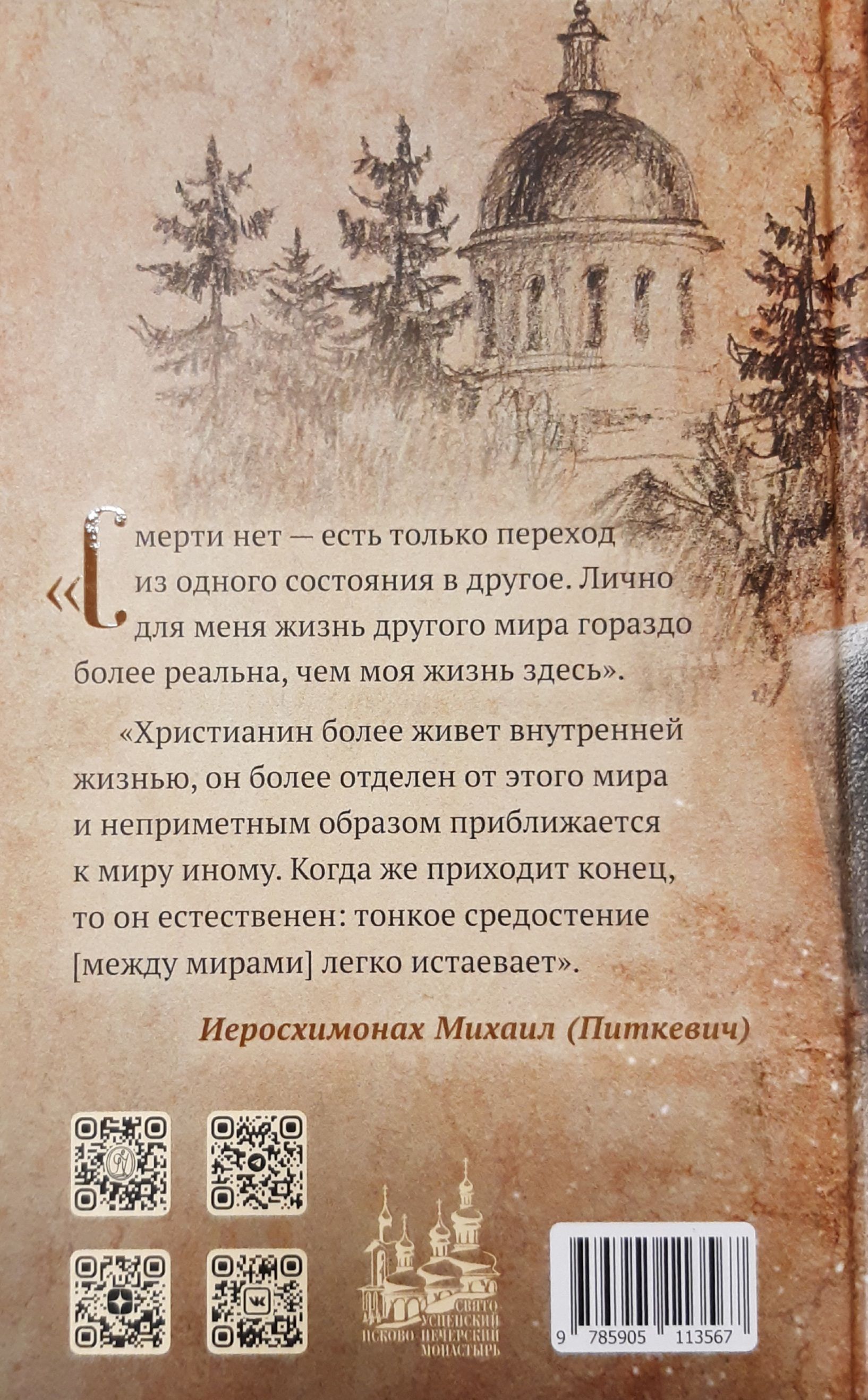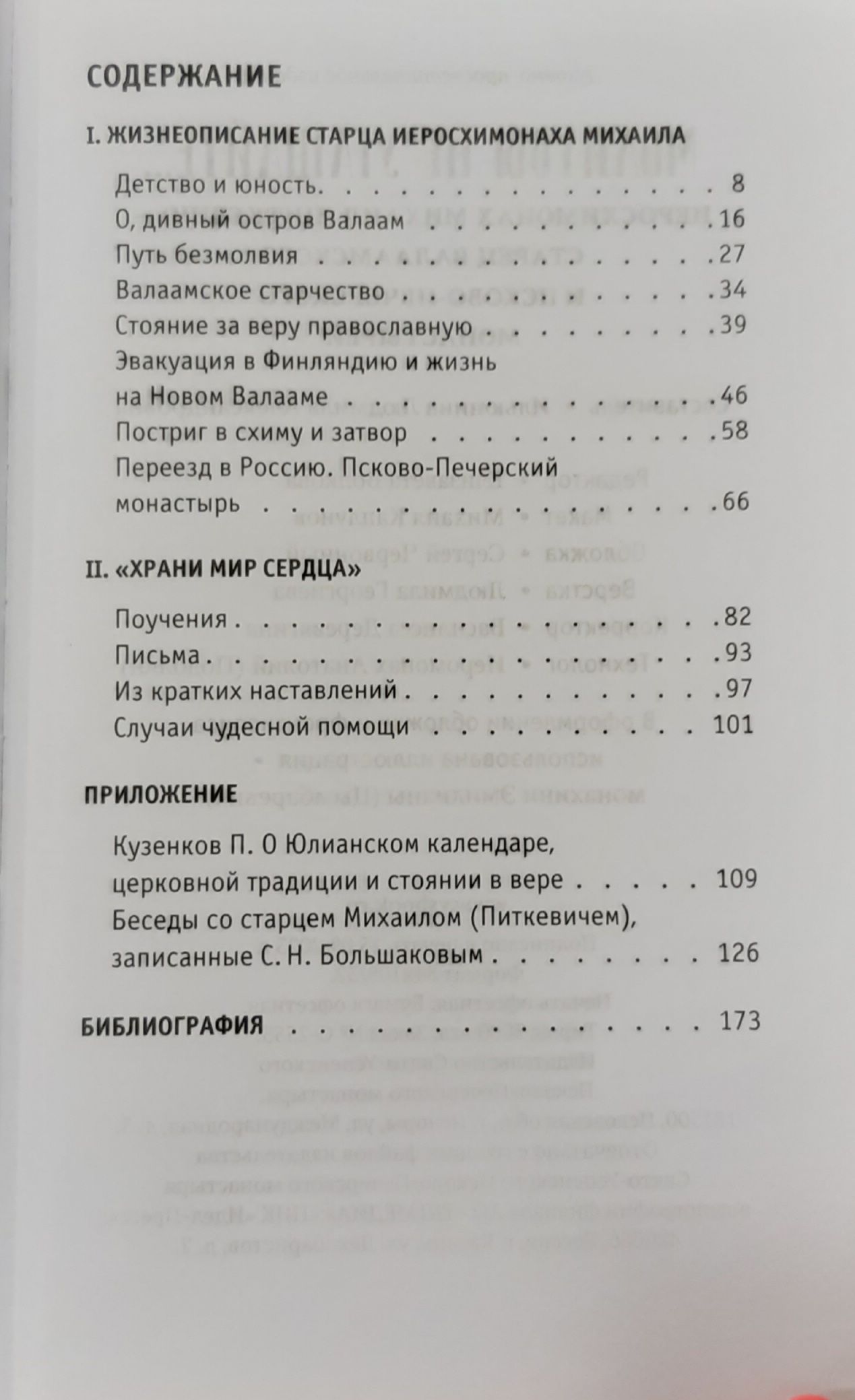 A quiet and meek elder was called schema-monk Michael (Pitkevich). He became such both through his personal spiritual efforts and because he humbly accepted the upbringing of the circumstances of life that God sent him. His early orphanhood, his wandering around Russia, the difficult circumstances of life at Valaam and later, when the monastery's residents had to move to Finland - all these life lessons the elder perceived as God's teaching. At the end of his life in the Pskov-Pechersk monastery, Father Michael, who had labored for many years on the path of "intelligent work", the comprehending of the heartfelt Jesus Prayer, was a little-talked-about mentor to the young brethren. His recorded teachings can serve the cause of spiritual enlightenment in our days.