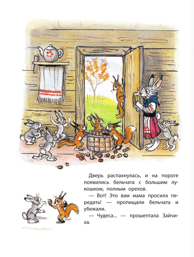Our book includes 3 stories on which cartoons were filmed: "A Bag of Apples", "Cat Fisherman" and "Uncle Misha". Favorite fairy tale characters can be seen not only in the book, but also on the screen. Vanya and Masha Knopochkin told V. Suteev about how their year went. He recorded their stories. This is how the cycle "Seasons of the Year" appeared. Boys and girls will read about the adventures of Masha and Vanya, and at the same time get acquainted with the seasons and holidays. And also V. Suteev came up with an amazing cycle called "100 pictures". The reader can now feel like a real writer and compose their own stories based on the pictures. For preschool age.