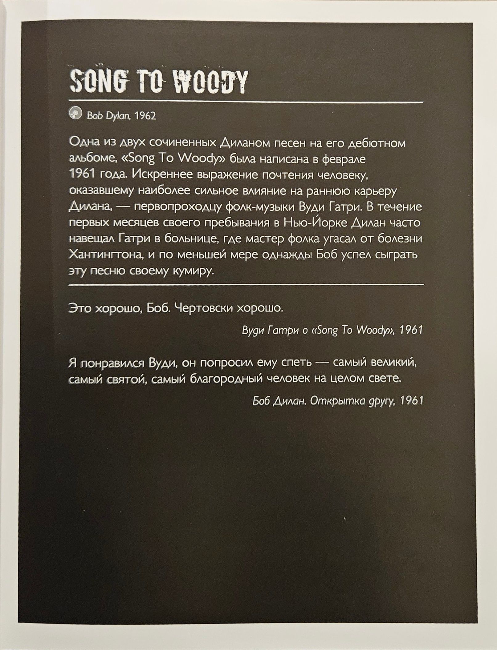 Bob Dylan is an American singer and poet, whose work is classified by the public and critics as exceptional. A counterculture writer, social and political songwriter, and one of the most commercially successful performers in the world, he has been an influential figure in American culture for nearly half a century. Grammy, Oscar winner Bob Dylan was awarded the 2016 Nobel Prize for Literature "for creating new poetic expressions in the great American song tradition." This award has caused many perplexed responses. But there is nothing better than to test for yourself how right the Nobel Committee was by reading Bob Dylan’s writings. Their Russian reader is represented by poets, musicians, artists – those people for whom Creativity is not just a word, but the meaning of life.