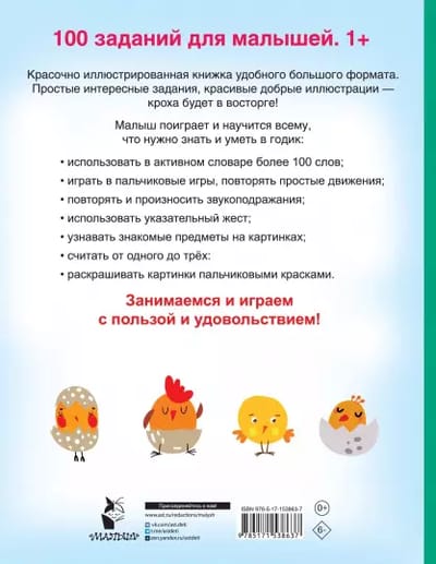 "100 tasks for the baby. 1+" - a colorfully illustrated book for the very young. Fun game tasks - everything you need to develop speech, thinking and intelligence, visual perception, fine motor skills. On the pages of a wonderful book - interesting game stories that will help to enthuse the child.