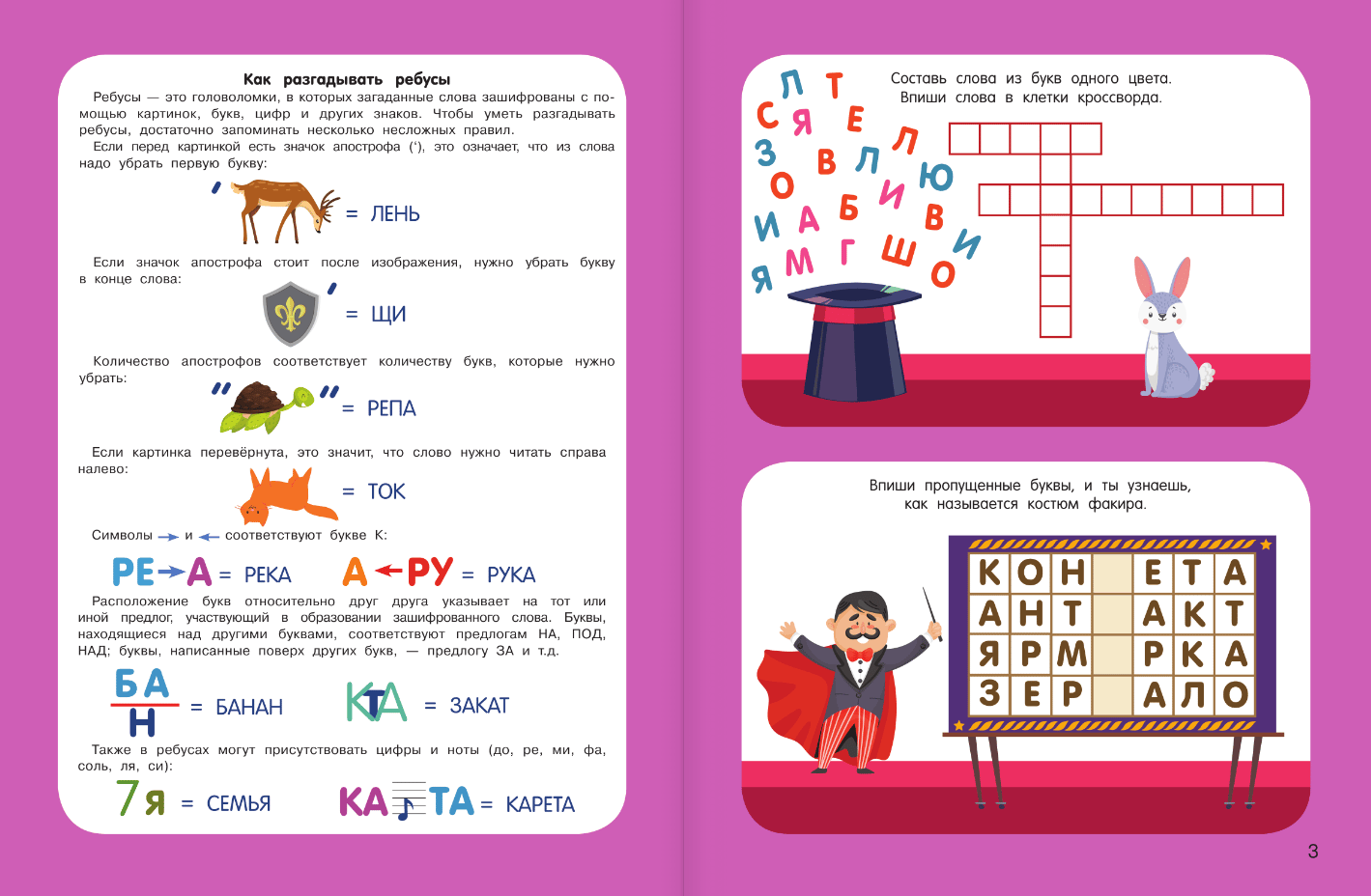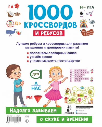 "1000 crosswords and rebuses" - a colorfully illustrated collection of puzzles for the most intelligent and inquisitive kids. Under the cover - a lot of rebuses and crosswords for every taste. Performing exciting tasks, kids will enrich their vocabulary, can develop mental abilities, learn to think outside the box. The book presents tasks of different levels of complexity.