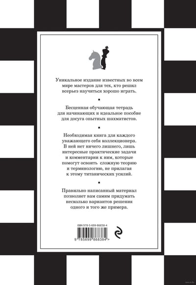 A unique edition by world-renowned chess players for those who are serious about learning to play well. An invaluable teaching book for beginners, and an ideal leisure aid for experienced chess players. An essential book for every collector. There is nothing superfluous in it, only interesting practical problems, and comments to them, which will help to master complex theory and terminology, without making titanic efforts. Properly written material allows you to come up with several variants of solving the same example yourself.