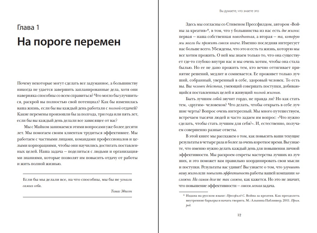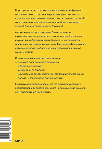 It's time to admit that annual planning is ineffective: we set goals and then procrastinate, believing we have plenty of time. But how can you ensure your success doesn't remain a pipe dream, but takes concrete form? Speed up the process—your year will last 12 weeks! The authors of this book—practicing business coaches and consultants—offer an approach that will completely change your mindset. The key is not the results, but the actions that led to them. This method is applicable to both your personal and professional life.