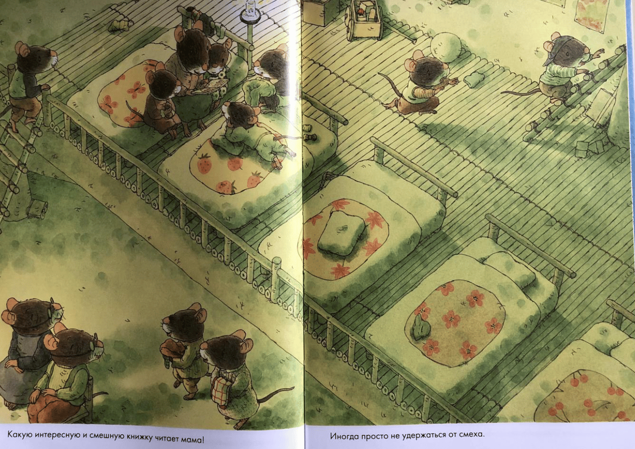 14 Forest Mice. Lullaby - about the end of a long and eventful day and gentle and important evening rituals. A warm Japanese bath with bathing and games, a cozy dinner, stories the mice tell each other in turn. And, of course, a mother's evening fairy tale and grandmother's lullaby: it is a real pleasure to go to bed with the mouse family.