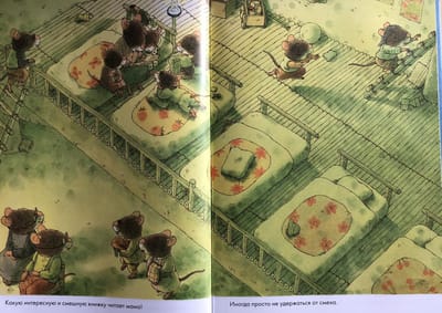 This is a very popular series of books in Japan and many European countries about the beauty of everyday life and the lives of three generations of a mouse family: grandma, grandpa, mom, dad and a dozen more mice.