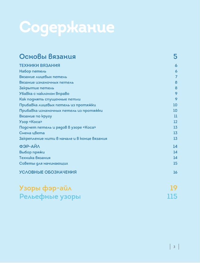 • Detailed patterns adapted for easy knitting. • A section with knitting basics and symbols.