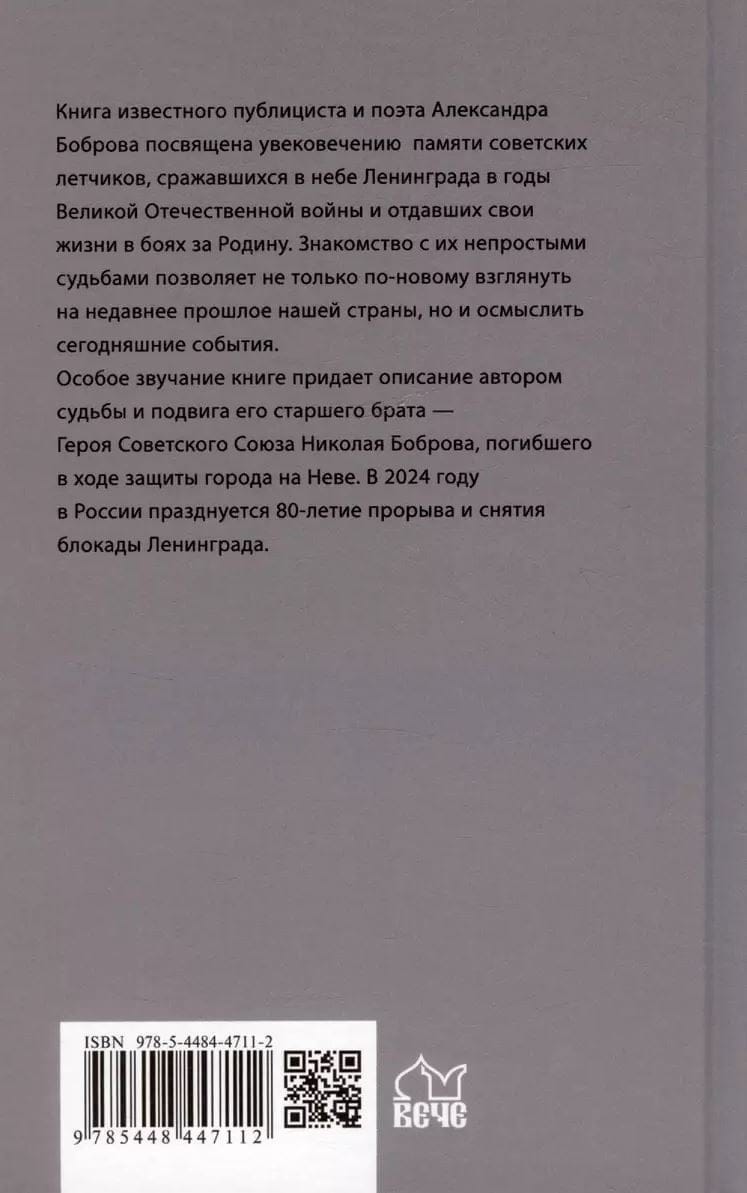 The book by the famous publicist and poet Alexander Bobrov is dedicated to immortalizing the memory of Soviet pilots who fought in the skies of Leningrad during the Great Patriotic War and gave their lives in the battles for the Motherland. Familiarity with their difficult fates allows not only to take a fresh look at the recent past of our country, but also to comprehend today's events.