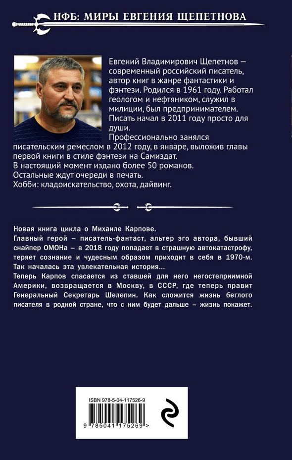 The protagonist is a fiction writer, the author's alter ego, a former OMON sniper, who in 2018 gets into a terrible car accident, loses consciousness and miraculously regains consciousness in 1970. Thus began this fascinating story...