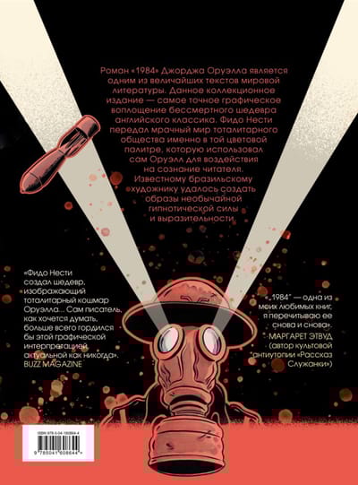 The most accurate graphic realization of George Orwell's totalitarian nightmare. More than 1500 drawings. George Orwell's novel "1984" is one of the greatest texts of world literature. This collector's edition is the most accurate graphic embodiment of the immortal masterpiece of the English classic. Artist Fido Nesti conveyed the gloomy world of the totalitarian society of the future in the color palette that Orwell himself used to influence the reader's consciousness - achromatic with splashes of bright red. All the color signals placed by the author in the novel are precisely observed. Thanks to this, as well as a special psychedelic style of drawing, the famous Brazilian artist managed to create images of extraordinary hypnotic power and expressiveness. "1984" is more than an anti-utopia, it is a real thriller, showing how weak, confused, betraying ideals and love can be every person in the trap of political and psychological manipulation of power. This visionary work explains how real totalitarianism works, how in everyday and everyday details a world can be organized, in which the main emotion and the main motivation is fear, and every act and even the movement of the soul is under the suffocating control of the state and special services.