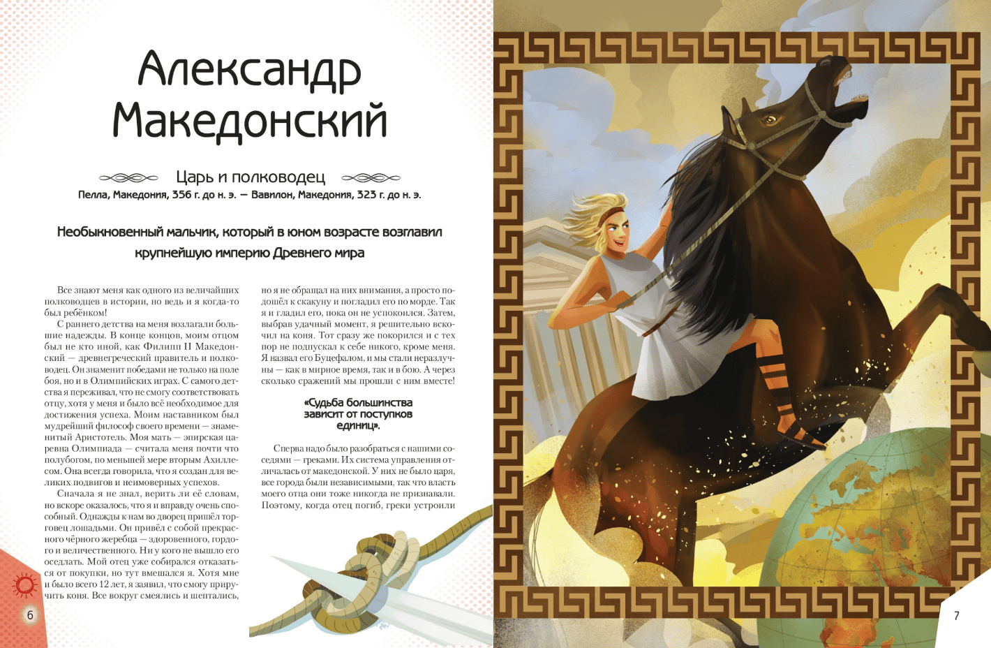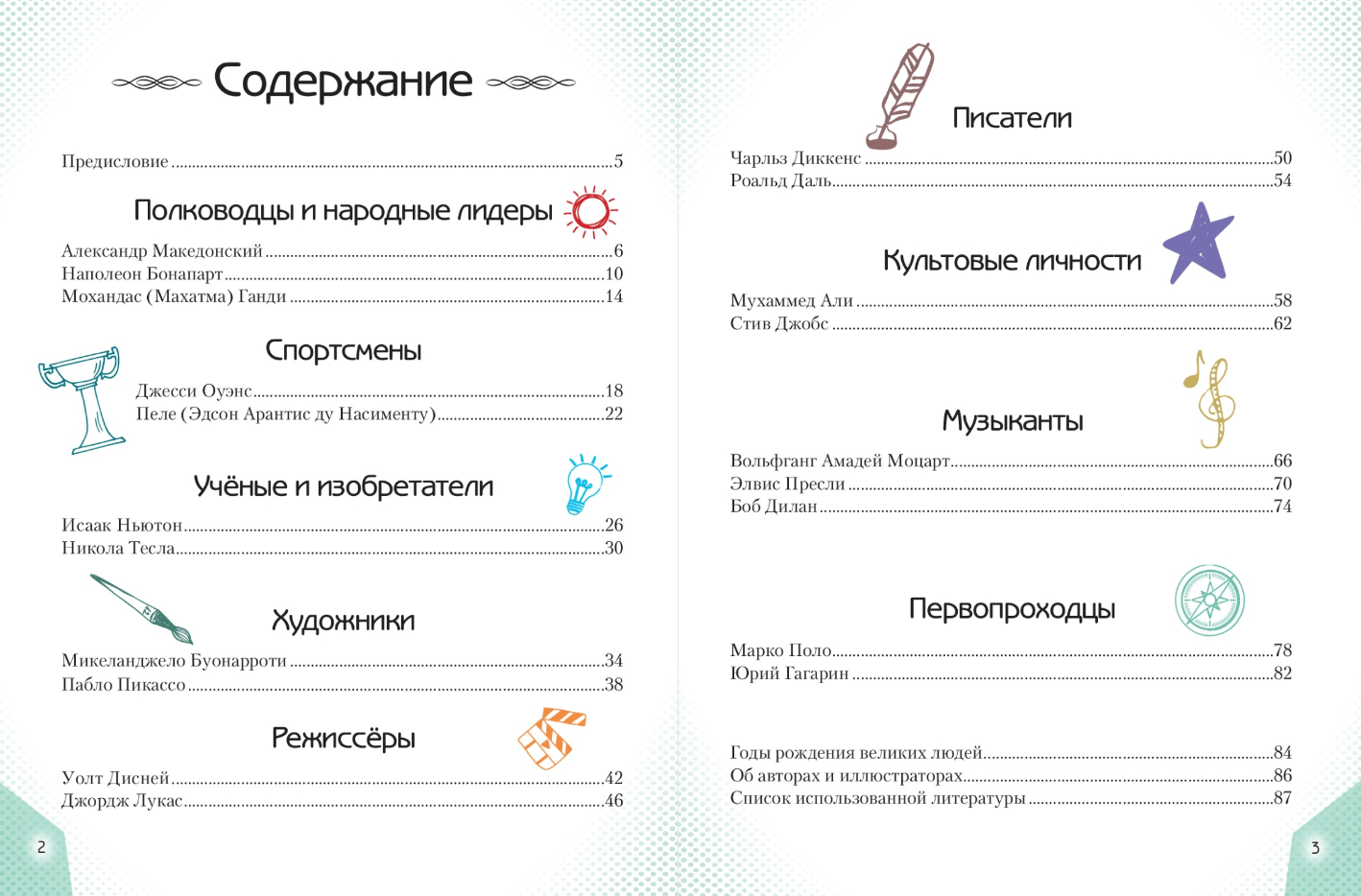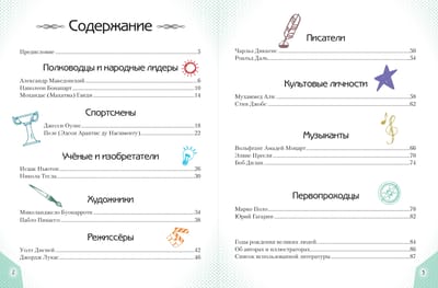 This book will tell about 20 boys who later became famous commanders, statesmen, scientists, researchers and figures of sports and arts, whose names will forever remain in the history of mankind. Who was the first to see our planet from space? Who received as many as 26 Oscars for their services in the field of animation? Which athlete won four gold medals at the 1936 Olympics? The Encyclopedia will answer all these and many other questions about the extraordinary boys who changed the world.