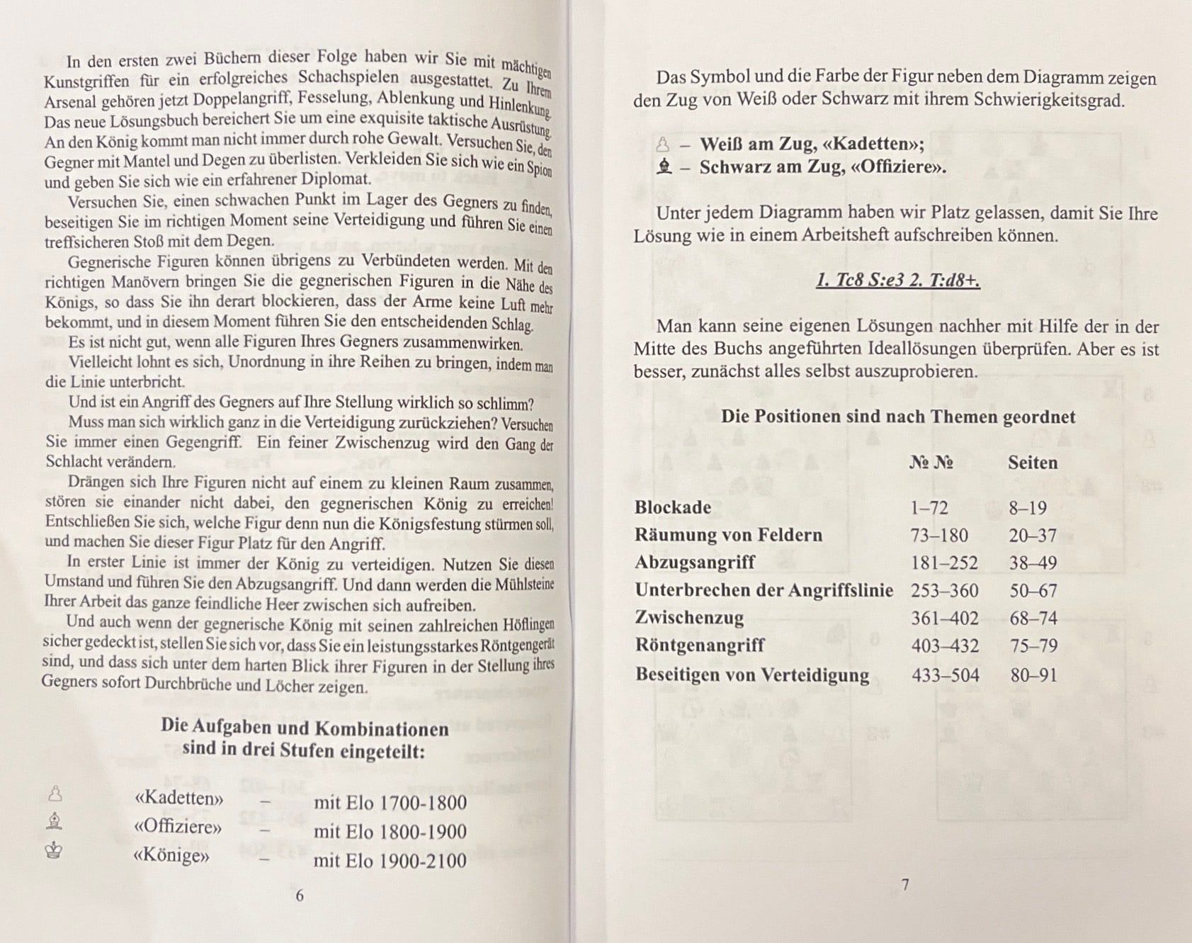 The third book of the series "Resolutions for Unlearners" will enrich you with more refined tactical weapons. It is not always possible to get to the king using brute force. Try to act with cunning! Disguise your actions like a scout and behave like an experienced diplomat. Find a weak spot in the enemy camp and at the right moment destroy defenses and deliver a subtle dagger strike. Alien figures can become allies. With skillful maneuvers attract the enemy pieces to their king, let them block him so that he can't move, and at this moment make a decisive blow. It's bad when all your opponent's pieces work together perfectly. Try to drive a wedge into their orders - block them with a strong chess door. Is an enemy attack on your fortifications so terrible? Is it worth it to go into a deaf defense? Always look for a counterstrike. A subtle intermediate jab can change the course of the fight! If your pieces are huddled together in a small space and are preventing each other from reaching the enemy king: decide who should attack the king's fortress, and make room for a piece to attack. The king should always be defended first. Take advantage of this fact and make an open attack on him and other pieces. And then the millstones of your "mill" will grind all the enemy army. It would seem that the enemy king is safely covered by his retinue. But under the powerful X-ray beam of your line pieces, cracks and holes will immediately appear in the opponent's position.