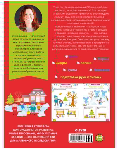 "250 Fun Tasks for New Year and Winter Vacation" is the perfect developmental winter vacation notebook for little explorers aged 4 to 6 years old. The book includes 250 games and tasks that fully correspond to the kindergarten program of the younger, middle and older groups.