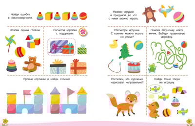 The book "300 Fun Activities for Children Aged 3-5" is a great way to spend time productively and enjoyably. 300 varied activities include mazes, attention and speech development games, logic puzzles, tracing, shading, and a host of engaging exercises. 30 colorful stickers make learning even more fun!