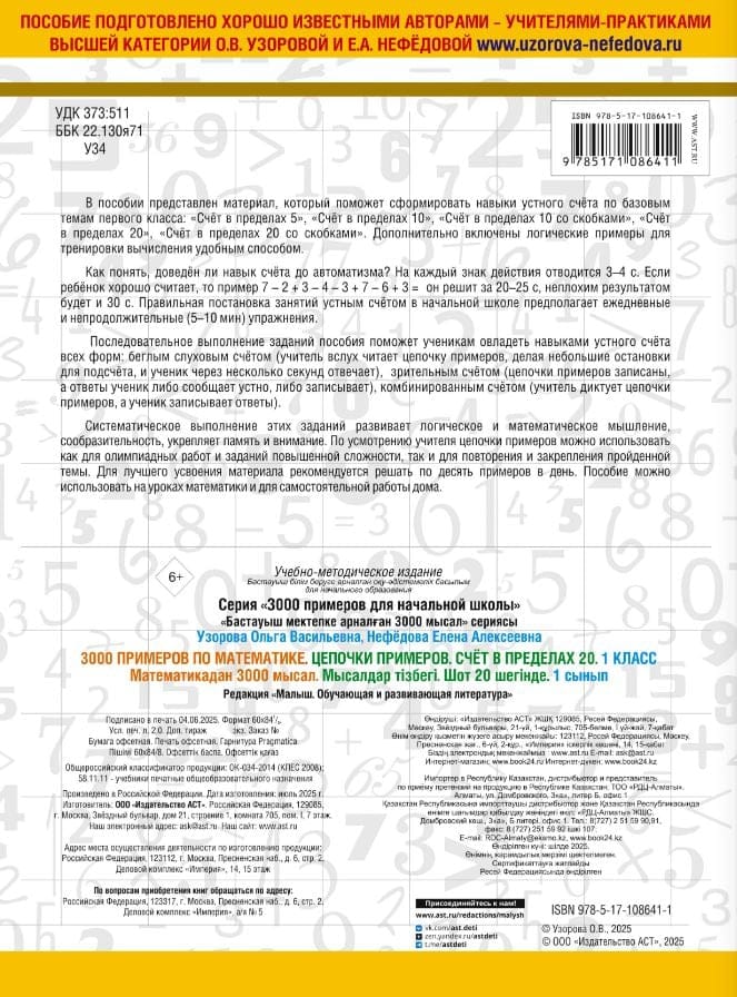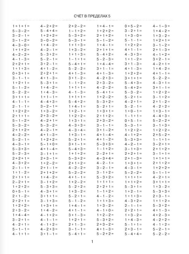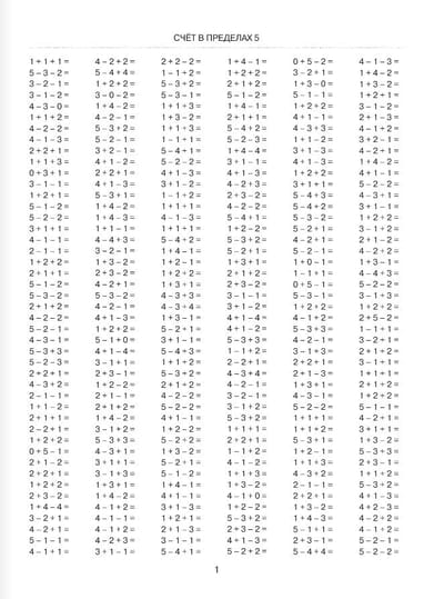 The manual presents material that will help develop oral arithmetic skills on the basic topics of the first grade: "Counting within 5", "Counting within 10", "Counting within 10 with brackets", "Counting within 20", "Counting within 20 with brackets", as well as logical examples for practicing calculations in a convenient way.
