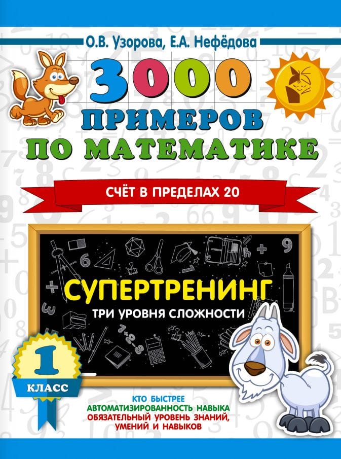 3000 math problems. Super training. Three difficulty levels. Counting to 20. 1st grade.