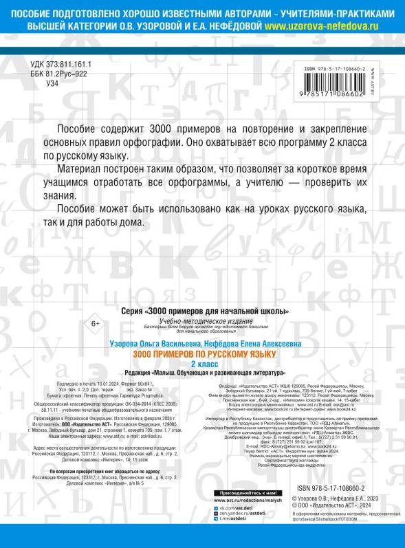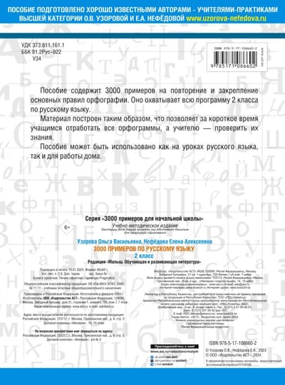 3,000 examples in Russian. 2nd grade. Large print.