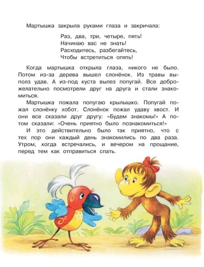 The famous tales from the "38 Parrots" series about a monkey, an elephant, a boa constrictor and a parrot always raise many questions among young readers. If only because in the real jungle these characters can not be friends, and the boa constrictor will surely swallow 38 parrots, and the monkey is unlikely to share bananas with the elephant. But children feel very well the similarities between themselves and these fabulous cubs of wild animals: the elephant is kind but timid, the monkey is energetic and persistent, the boa constrictor is strong and ingenuous, and the parrot is clever but overconfident. However, they have learned to be friends with each other, and this is an example for young kindergartners.