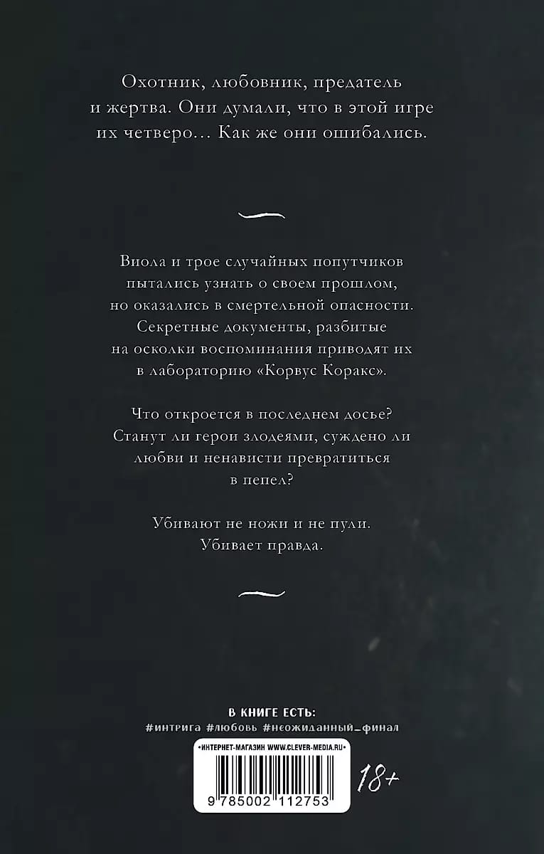 Hunter, lover, betrayer and victim. They thought there were four of them in this game... How wrong they were. Viola and three random traveling companions were trying to learn about their past, but found themselves in mortal danger. Secret documents, shattered memories lead them to the Corvus Corax laboratory.