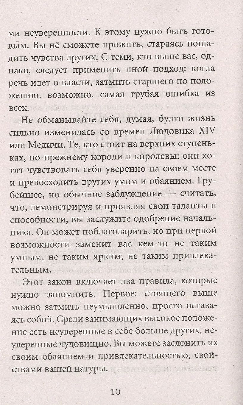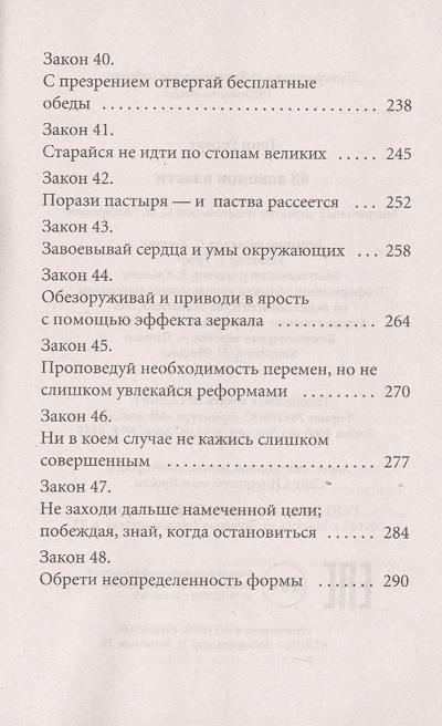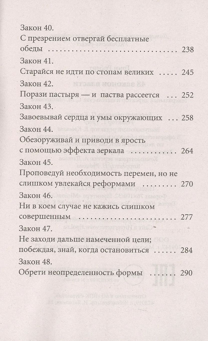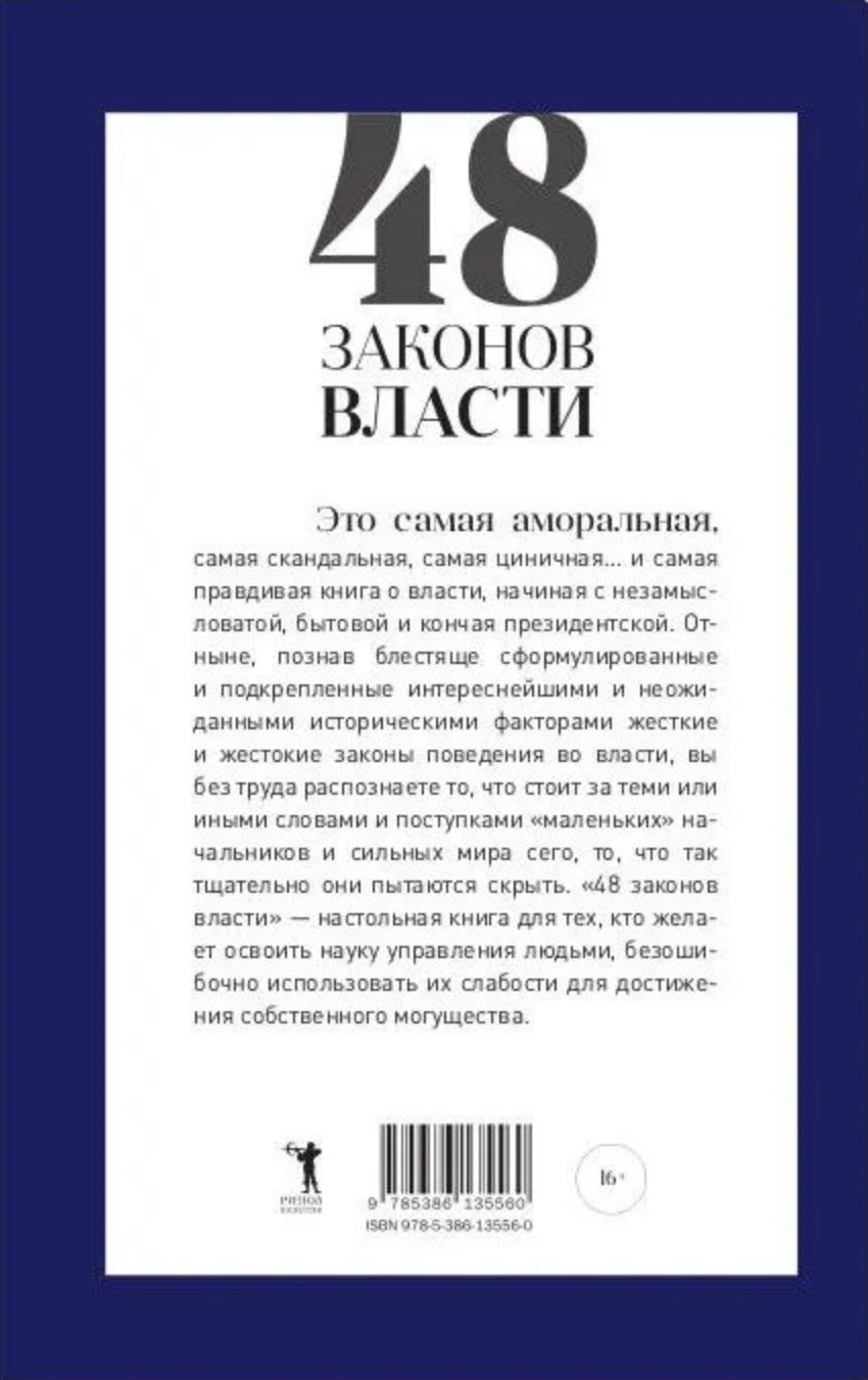 This is the most immoral, the most scandalous, the most cynical, and the most truthful book about power, from the simplest, everyday to the presidential. From now on, having learned the harsh and cruel laws of behavior in power, brilliantly formulated and supported by fascinating and unexpected historical factors, you will easily recognize what lies behind the words and actions of "petty" bosses and the powerful, what they so carefully try to hide. "The 48 Laws of Power" is a reference book for those who want to master the science of managing people and unerringly exploit their weaknesses to achieve their own power.