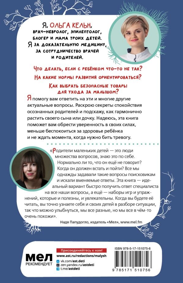 What should you do if something is wrong with your child? What developmental norms should you follow? How can you choose safe baby care products? Olga Keln, an experienced child neurology specialist and mother of three, will help answer these and many other pressing questions. In this book, she will reveal the secrets of mindful parenting and offer advice on how to harmoniously raise your son or daughter. Expert advice and tips will help you gain confidence, worry less about your child's health, and avoid waiting for the right moment to sound the alarm.