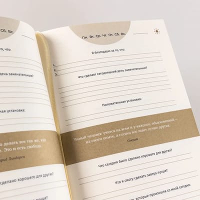 It is suitable for those who are already familiar with the first edition and want to continue filling the diary in a new format, as well as for those who are just beginning to familiarize themselves with the 6 Minutes® Principle. Undated, designed to be filled for 6 months. More space for notes. New assignments. New weekly rituals. New quotes.