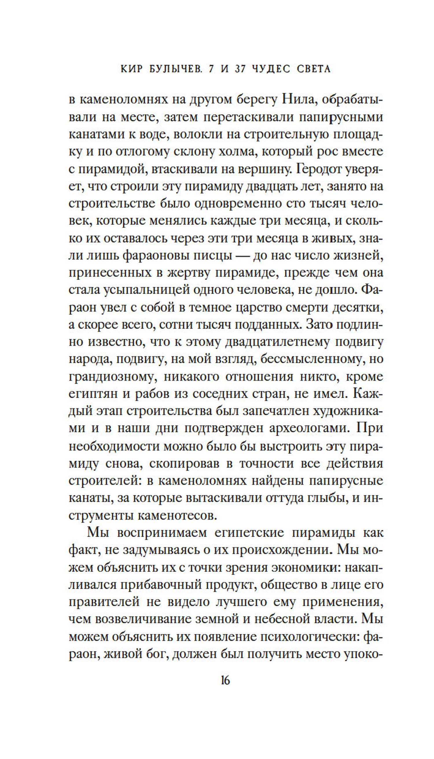 In 1965, the historian and orientalist Igor Vsevolodovich Mozheiko (1934–2003), known in the scientific community for his works on the history of Southeast Asia, defended his candidate's dissertation on the topic of "The Pagan State (11th–13th centuries)", and in 1981, his doctoral dissertation on the topic of "The Buddhist Sangha and the State in Burma". Meanwhile, all Soviet teenagers (and many adults too!) were engrossed in the works of the famous science fiction writer Kir Bulychev. And only a few knew that the scientist Igor Mozheiko and the creator of Alisa Selezneva were one and the same person. "7 and 37 Wonders of the World" is an entertaining story about outstanding monuments of architecture and art from the ancient list of the "seven wonders of the world". But not only about them: the author has significantly expanded this textbook list in order to give due credit to the remarkable creations of human genius created outside the world known to the ancient Greeks.