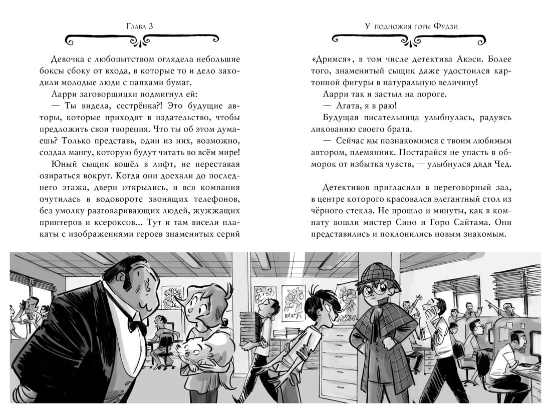Larry, Agatha and her permanent assistants Watson and Mr. Kent are rushed to Tokyo. They are tasked to ensure the safety of a Japanese artist, from whom the last chapter of his famous manga about detective Akeshi was almost stolen. It's an easy task, and a pleasant one at that: Larry is a passionate fan of the series! When he arrives, however, he discovers that the mysterious robber has promised to see it through to the end. He has sworn to take revenge on the artist - and he has kept his promise! In the most beautiful place in Japan, at the foot of Mount Fuji, the precious illustrations disappeared. And the suspects turn out to be too many... or, on the contrary, too few?
