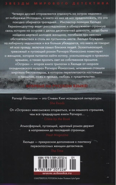 Four friends went on vacation to an island off the coast of Iceland, and none of them could have guessed that the trip would turn tragic... Police Inspector Hulda Hermannsdóttir investigates and discovers a strange connection between the story on the island and a case from ten years ago, when a young woman was found dead, killed under unclear circumstances in a similarly desolate place. Hulda wanders through a maze of innuendo and becomes increasingly convinced that no one is telling her the whole truth, including those closest to her. Ragnar Jonasson's gripping, disturbing and frightening novel tells the story of a woman trying to find the truth that eludes her in the lapses of time, as well as shedding light on her own past. "The Island" - the second book in the trilogy about Hulda from the "king of Scandinavian noir" Ragnar Jonasson, instantly became a world bestseller, in which the present and the past, lies and truth, love and betrayal are intertwined.
