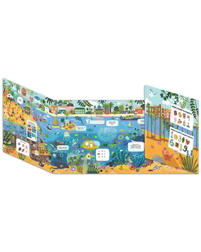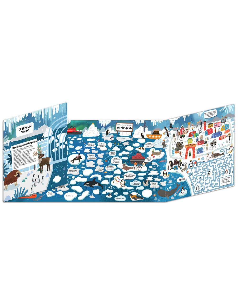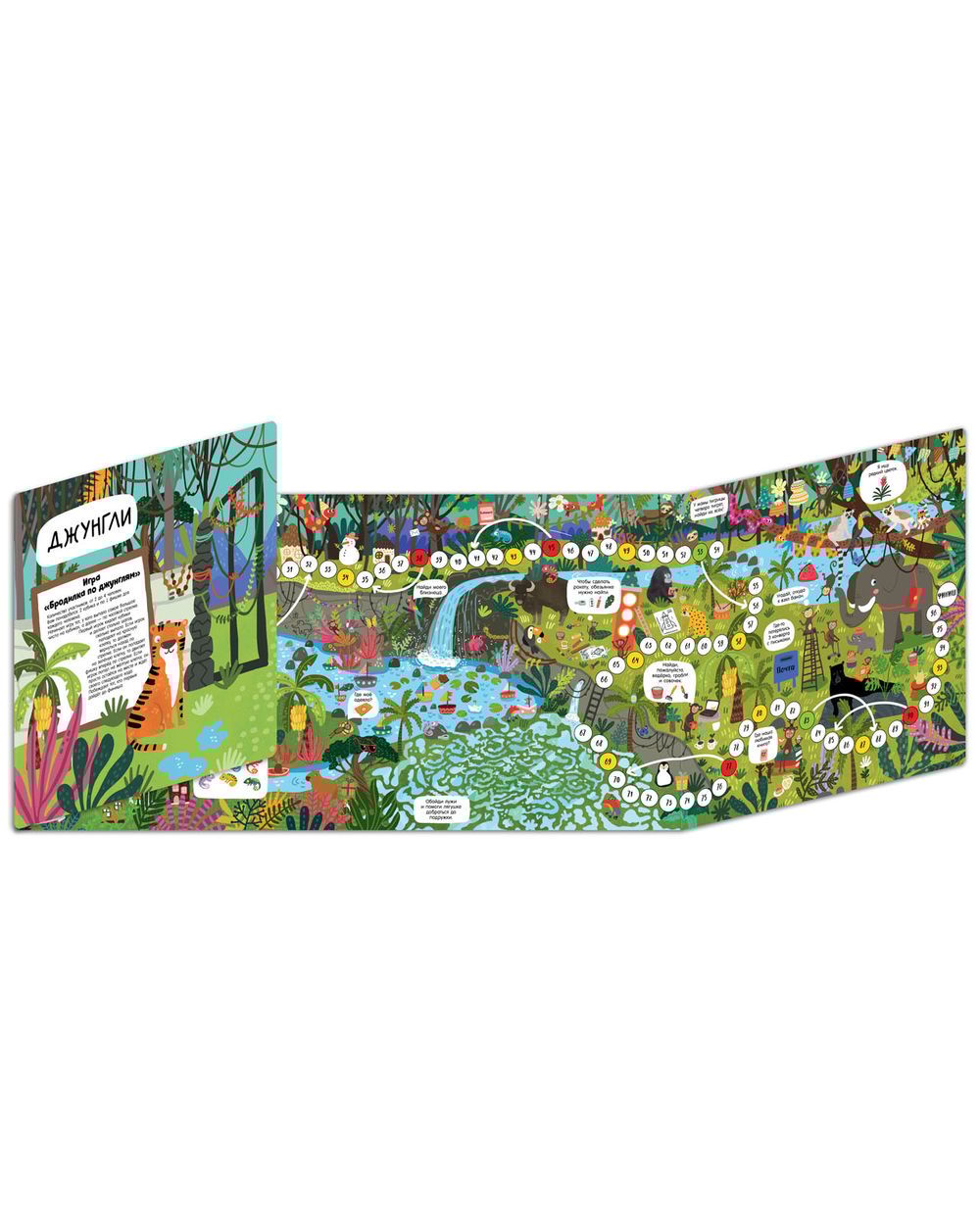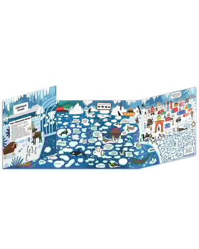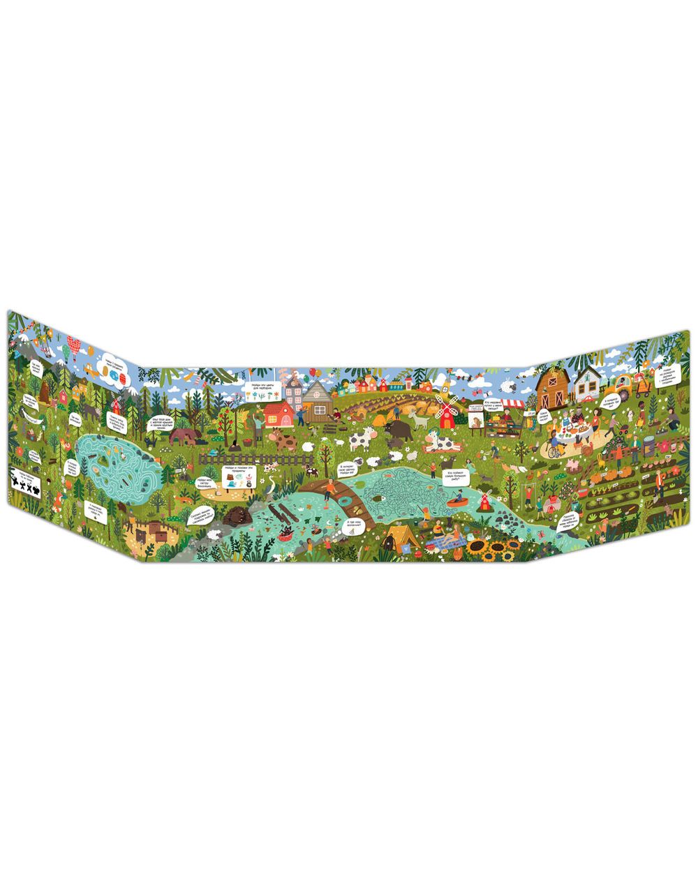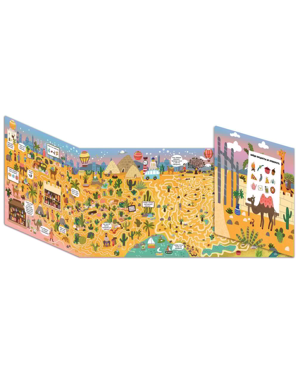 "Giant Find and Show Book" will fascinate your child and the whole family for a long time. Every page is a colorful story with many hidden animals and objects to find. Wander through the jungle, village, savannah, north and south pole and dive into the underwater world! "Giant 'find and show' book" - is also an amazing fold-out book format. Open the book, unfold the flaps, and you get one meter of games and tasks! Each of these spreads is dedicated to a different topic. Open the book, look for the right objects, train your attention and have fun together with your child.