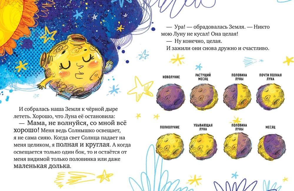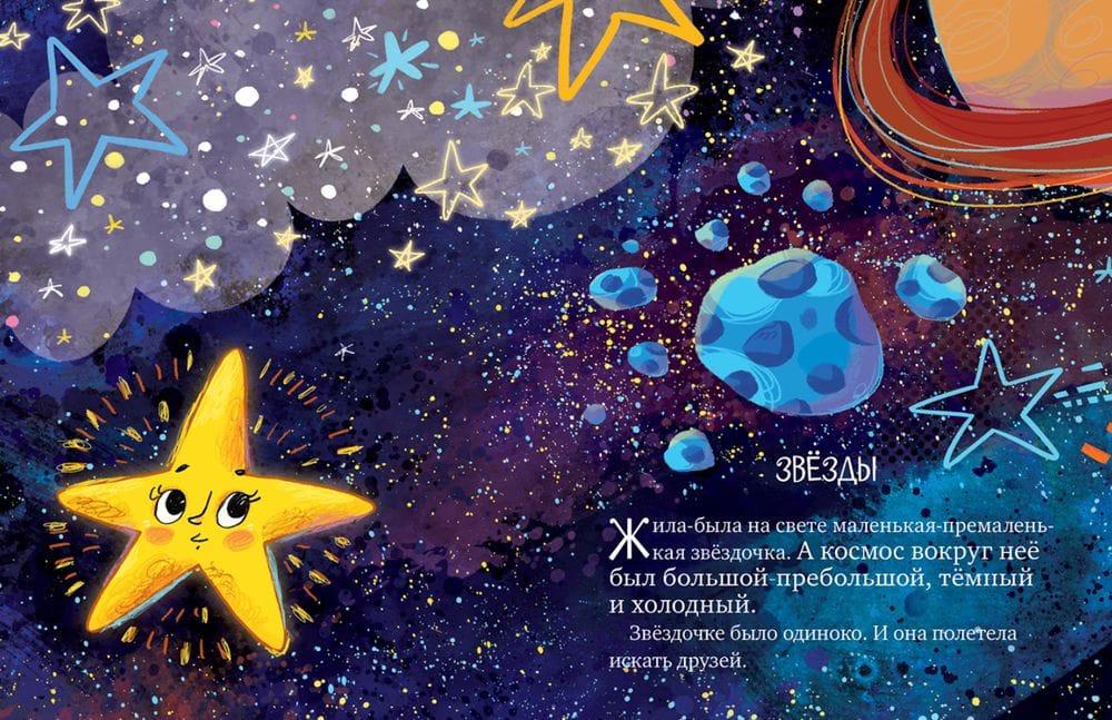 The book "Star Tales. Exploring Space" will impress your whimsical child and tell him a lot of interesting things about space. All complex information is presented in the form of simple and understandable tales with a fascinating plot and colorful illustrations. Thanks to this approach, even the youngest child will easily memorize the location of the planets in the solar system, will get an idea why day is replaced by night and what role the moon plays here. The baby will read a story about black holes and learn how they are formed, as well as get acquainted with the beautiful constellations: Unicorn, Big Dipper and Little Dipper.