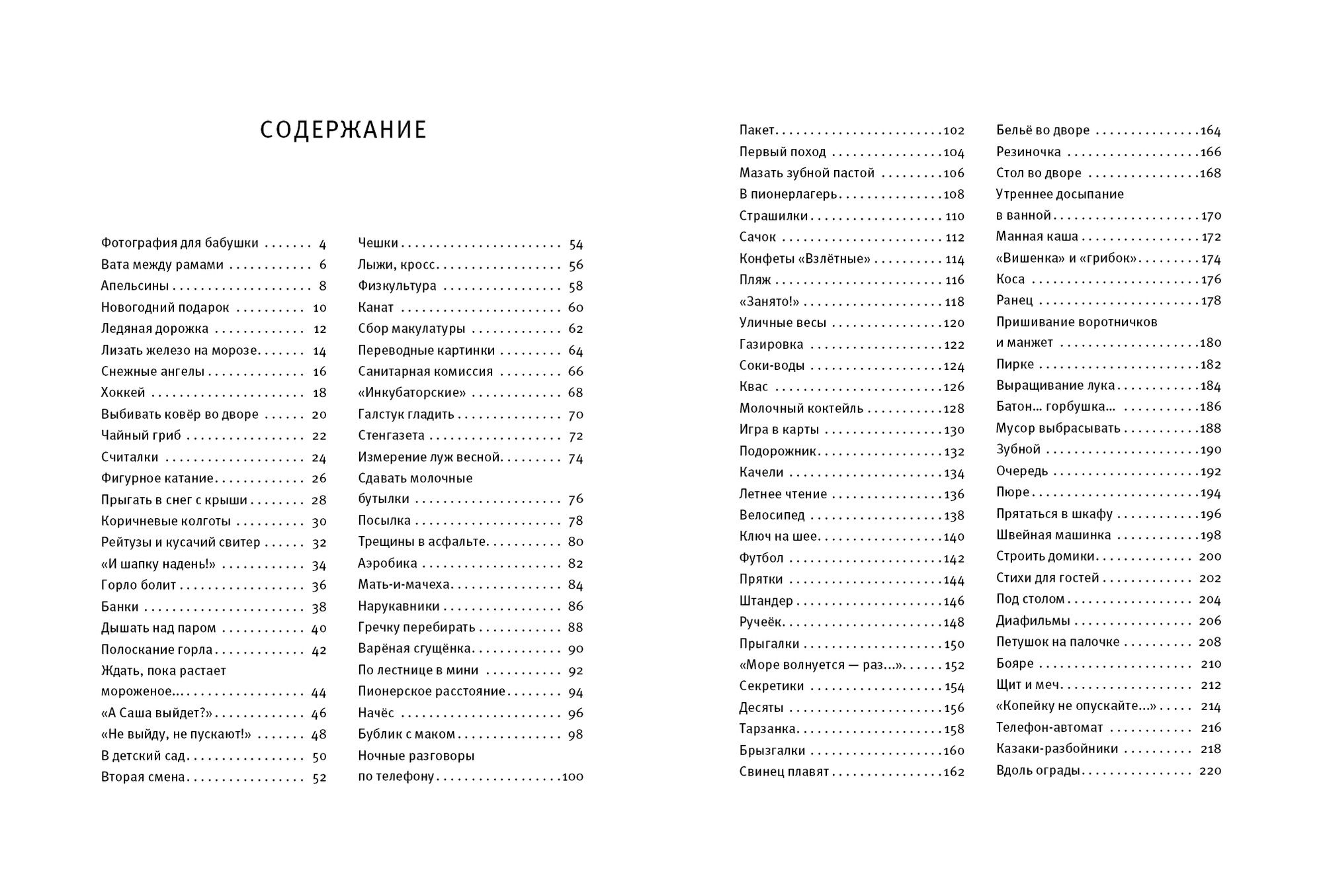 "Yes! I had that too!" you'll exclaim when you open this book. A scratchy sweater, filmstrips, a wall newspaper, a net, wastepaper collection, transfers, a plywood parcel box, and a wax seal. The book's characters beat the carpet in the yard, boil condensed milk, iron a Pioneer tie, avoid stepping on cracks in the asphalt, and measure the depth of puddles in the spring. And they send each other call signs under their windows: "Will Sasha come out?"