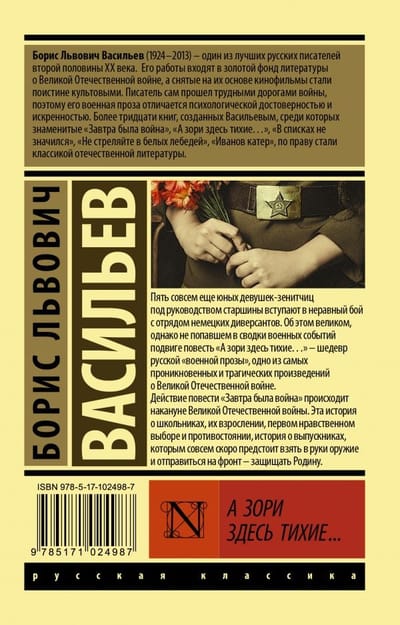 Five very young female anti-aircraft gunners under the leadership of a petty officer engage in an unequal battle with a detachment of German saboteurs. About this great, but did not get into the summary of military events of the feat of the story "The dawns are quiet here ..." - masterpiece of Russian "military prose", one of the most heartfelt and tragic works about the Great Patriotic War. The action of the story "Tomorrow Was War" takes place on the eve of the Great Patriotic War. This is a story about schoolchildren, their maturation, the first moral choice and confrontation, the story of graduates who will soon take up arms and go to the front - to defend the Motherland.