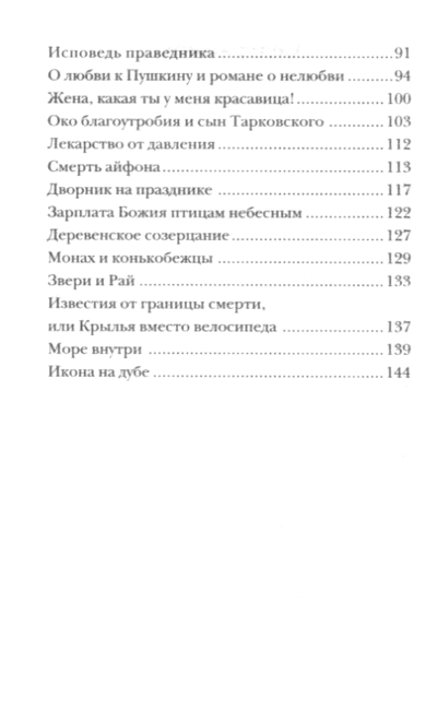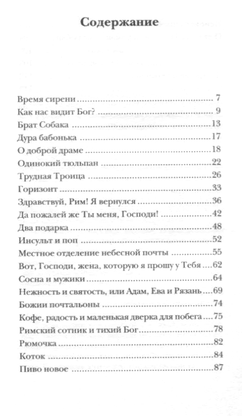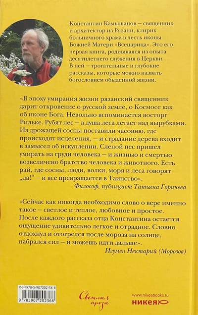 The book by priest Konstantin Kamyshanov "Adam, Eve and Ryazan" includes touching and profound stories that can be called theology of everyday life. The author describes life simply, but describes it in such a way that we see in it an exit to another dimension. Crows swaying in the wind, an old woman for whom God lit a candle in the form of a tulip, Tarkovsky's son and village parishioners, Rome, which is "just the outskirts of Ryazan", and cats - angels of childhood... We suddenly gain the ability to see the world through the eyes of a philosopher, artist and Christian and once again discover for ourselves: the world is not boring, not evil, it is great and warm, and God is everywhere in it.