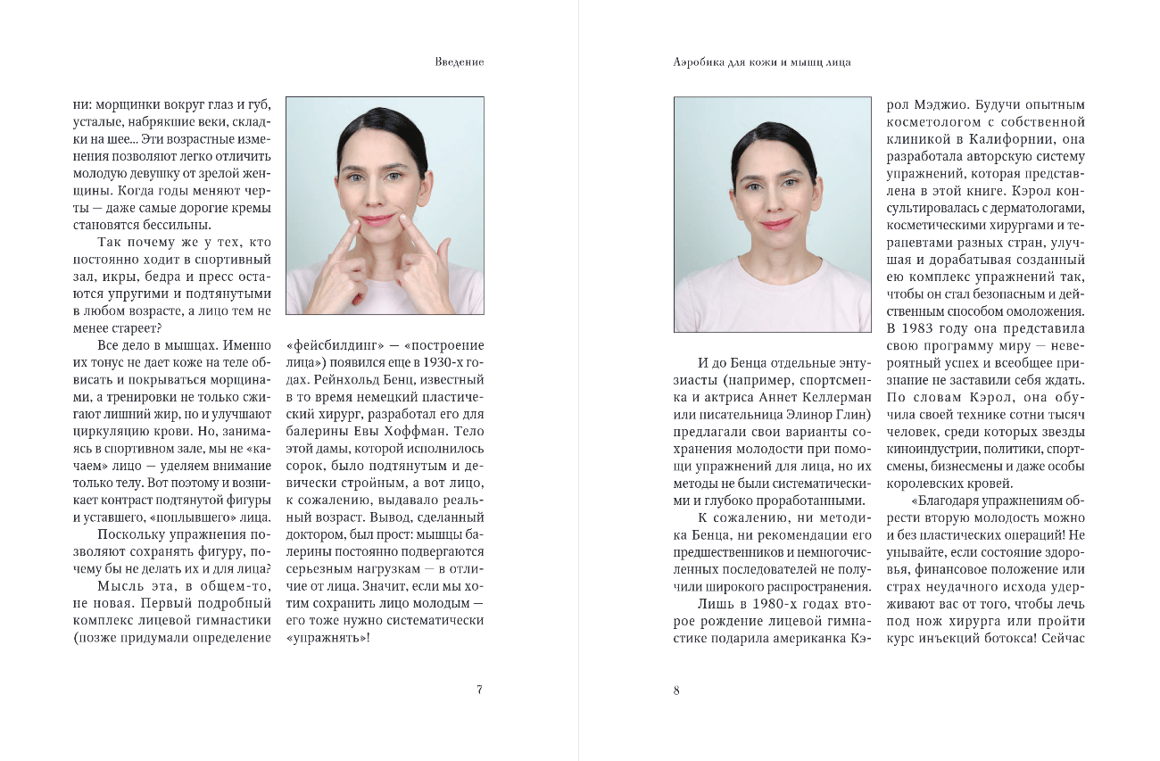 This book gives you the chance to look 10 years younger in a month by doing just 20 minutes of facial aerobics a day! It contains exercises for the skin and muscles of the face based on the method of Carol Maggio, the most authoritative face-building expert. Start doing them now, and in a week you'll see the first results: your face contour will be tightened, your skin will become more radiant, your double chin will disappear, under-eye bags will disappear, your brows and eyelids will be lifted, your nasolabial folds will soften, the corners of your mouth will lift, and your lips will become fuller.