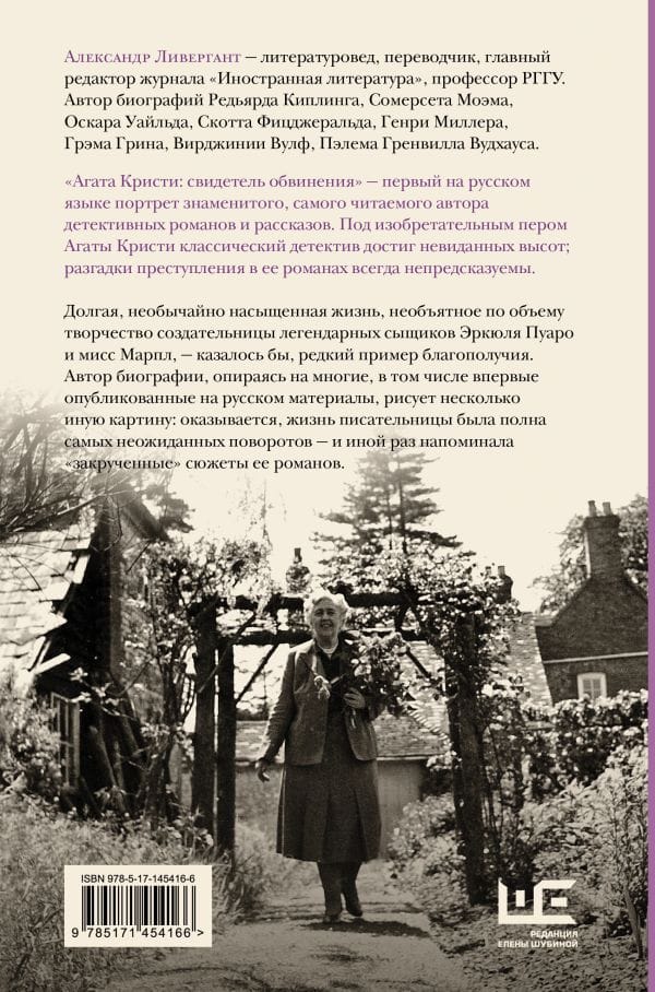 Alexander Livergant is a literary scholar, translator, editor-in-chief of the journal Foreign Literature, and professor at Russian State University. He is the author of biographies of Rudyard Kipling, Somerset Maugham, Oscar Wilde, Scott Fitzgerald, Henry Miller, Graham Greene, Virginia Woolf, and Pelem Granville Woodhouse. "Agatha Christie: Witness for the Prosecution" is a portrait of the famous, most widely read author of detective novels and short stories. Under Agatha Christie's inventive pen, the classic detective reached unprecedented heights; the solutions to the crime in her novels are always unpredictable. A long, unusually rich life, immense on the volume of creativity creator of the legendary detective Hercule Poirot and Miss Marple - it would seem a rare example of well-being. The author of the biography, based on many, including first published in Russian materials, paints a slightly different picture: it turns out that the life of the writer was full of the most unexpected turns - and sometimes resembled the "twisted" plots of her novels.