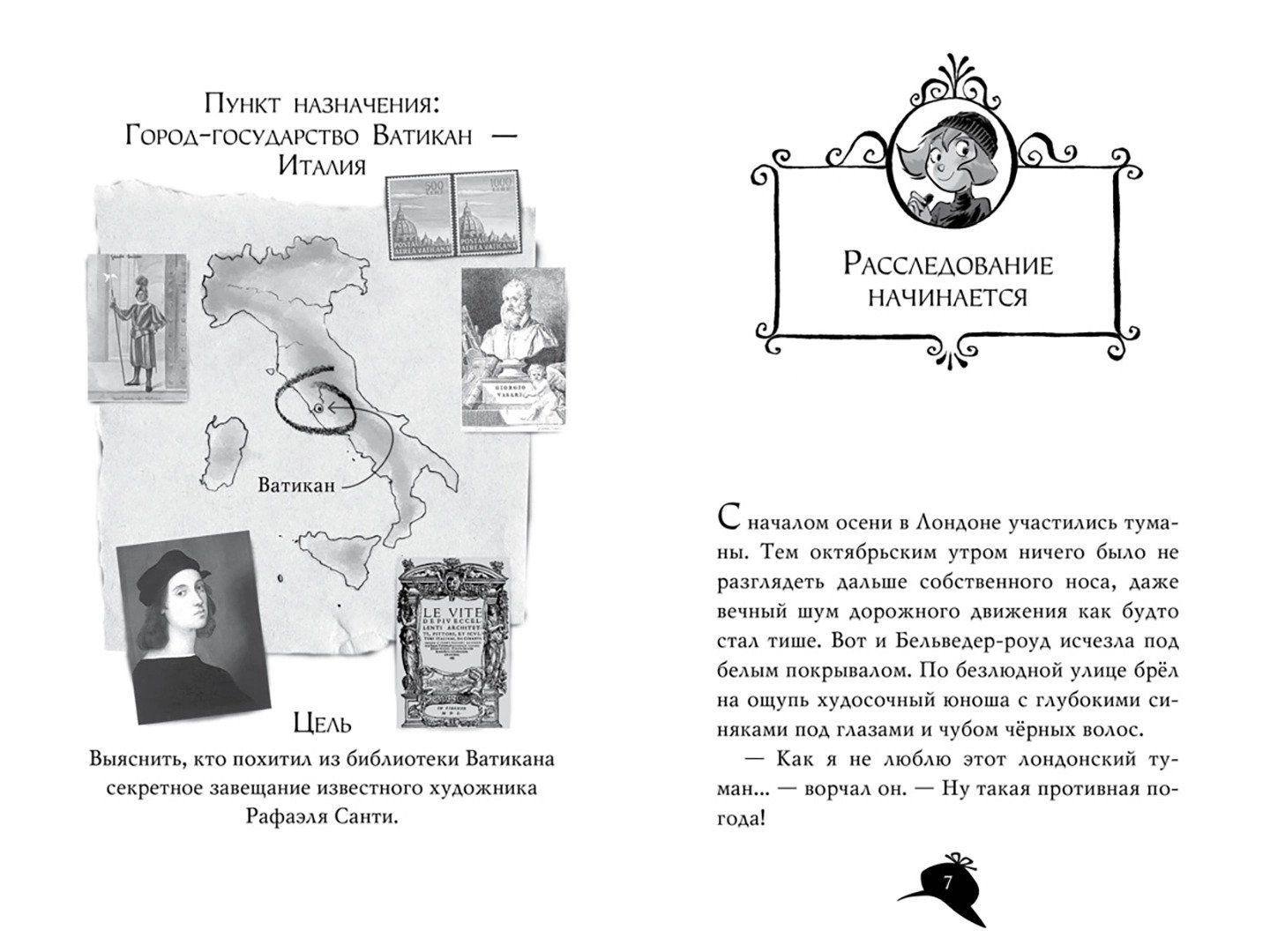 Blessed with an amazing instinct and a phenomenal memory, Agatha Mystery dreams of becoming a writer. But that's in the future, but for now she's just a superb detective! Together with her hapless cousin Larry, a student of detective school, she travels the world to solve the most intricate mysteries. They are aided by a loyal butler, a mean Siberian cat, and a host of oddball relatives. From the Secret Archive of the Vatican Library a valuable document has been stolen - the will of Raphael, the great Italian painter, just discovered by scientists and not even deciphered yet. Agatha and Larry Mystery are immediately sent to Italy. Fortunately, their uncle, an outstanding expert on ancient texts, lives in Rome. Together they will find the missing letter and at the same time make a sensational discovery....