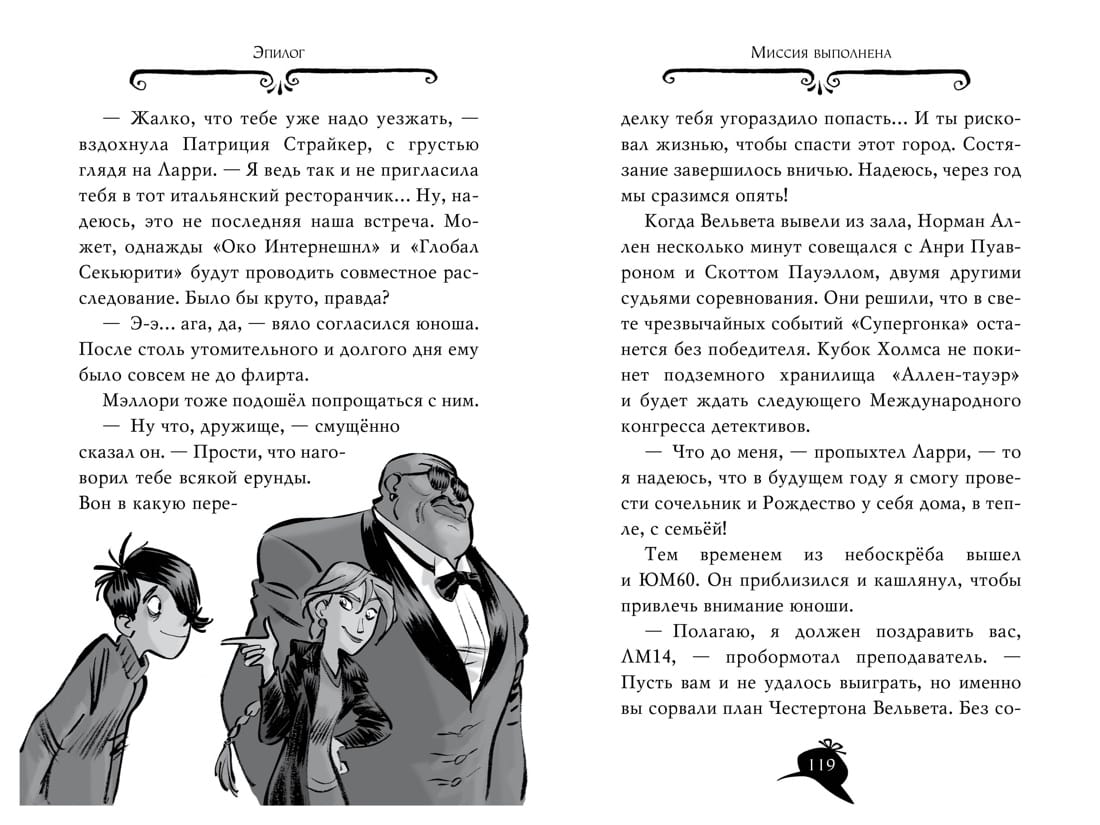 Blessed with an amazing instinct and a phenomenal memory, Agatha Mystery dreams of becoming a writer. But that's in the future, but for now she's just a superb detective! Together with her hapless cousin Larry, a student of detective school, she travels the world to solve the most intricate mysteries. They are aided by a loyal butler, a mean Siberian cat, and a host of oddball relatives. Larry prepares to celebrate Christmas at home with his family. But it was not to be: suddenly he receives an order to rush to New York to the prestigious International Congress of Detectives and take part in the "Super Race". The young man will have to fight for the Holmes Cup with his peers from the leading detective schools of the world. Larry, Agatha, Mr. Kent and cat Watson fly to New York, where another Mystery joins their team - Uncle Kim, a city climber. It would seem that it is possible to forget about criminals for a while, because in this competition detective plays against detective. However, the organizers and participants of the competition do not realize that this year's "Super Race" will become a cover for the crime of the century....