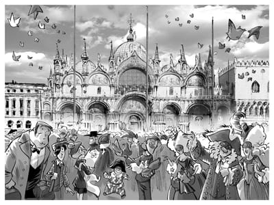 At the height of the famous carnival, someone has stolen an ancient golden crown, one of those worn by the Doge rulers of Venice during the heyday of the Venetian Republic. Agatha and Larry Mystery will have to unravel this difficult mystery while trying not to be distracted by the magnificent architecture and colorful swirl of carnival costumes and masks. The sleuths will not only solve the mysteries of impoverished aristocrats, but also a gondola chase through the famous canals of the city on the water!